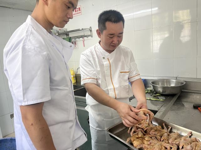 上午9時(shí),烹飪交流活動在軍營食堂正式啟動?;顒泳劢埂疤厣恕?、“家常菜”兩大教學(xué)菜單,以分段授課交流的方式,由廣東省“粵菜師傅”二星級廚師甄樹源及中式烹調(diào)高級廚師譚仲康等兩位粵菜名廚掌勺,現(xiàn)場進(jìn)行親身示范教學(xué)。?制作臺前,名廚展示了地方特色菜——潭碧冬瓜盅的雕刻技法和高湯吊制技巧,并帶領(lǐng)大家一起調(diào)配僑鄉(xiāng)特色燜馬岡鵝和藥膳水晶乳鴿的醬料,與在場官兵高頻互動,參與士兵紛紛記錄烹飪要訣。有士兵感慨:“一些烹飪的小細(xì)節(jié)真是太妙了,這技巧轉(zhuǎn)業(yè)后開餐館都用得上!”吳淑芬主任也指出:“本次活動以飲食文化為紐帶,既提升官兵生活技能,又讓傳統(tǒng)粵菜技藝在軍營扎根?!?/span>