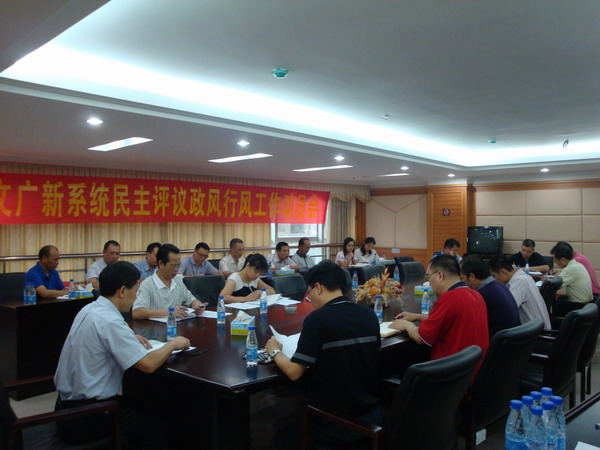 為扎實(shí)有效地開展民主評議政風(fēng)行風(fēng)工作,7月26日上午,市文廣新局召開民主評議政風(fēng)行風(fēng)工作動員會,全面部署動員做好這項(xiàng)工作。局機(jī)關(guān)全體人員和屬下單位正副負(fù)責(zé)人參加了會議。 會上, 紀(jì)檢組長張雪惠宣讀了《開平市文廣新局民主評議政風(fēng)行風(fēng)工作方案》,向與會同志明確了開展民主評議政風(fēng)行風(fēng)工作的指導(dǎo)思想、評議對象、評議內(nèi)容、評議重點(diǎn)和實(shí)施步驟。 局長譚偉強(qiáng)在會上強(qiáng)調(diào)指出,開展民主評議政風(fēng)行風(fēng)工作,有利于促進(jìn)全局各項(xiàng)工作,各股室和屬下單位要結(jié)合自身的職能和特點(diǎn),開展好此項(xiàng)工作。對于如何做好民主評議政風(fēng)行風(fēng)工作,譚偉強(qiáng)局長指出了三點(diǎn)要求:一是提高認(rèn)識,統(tǒng)一思想,明確民主評議政風(fēng)行風(fēng)的目的;二是突出重點(diǎn),精心組織,全面開展民主評議政風(fēng)行風(fēng)工作;三是加強(qiáng)領(lǐng)導(dǎo),狠抓落實(shí),確保民主評議政風(fēng)行風(fēng)工作按時(shí)按步驟圓滿完成。 動員會現(xiàn)場