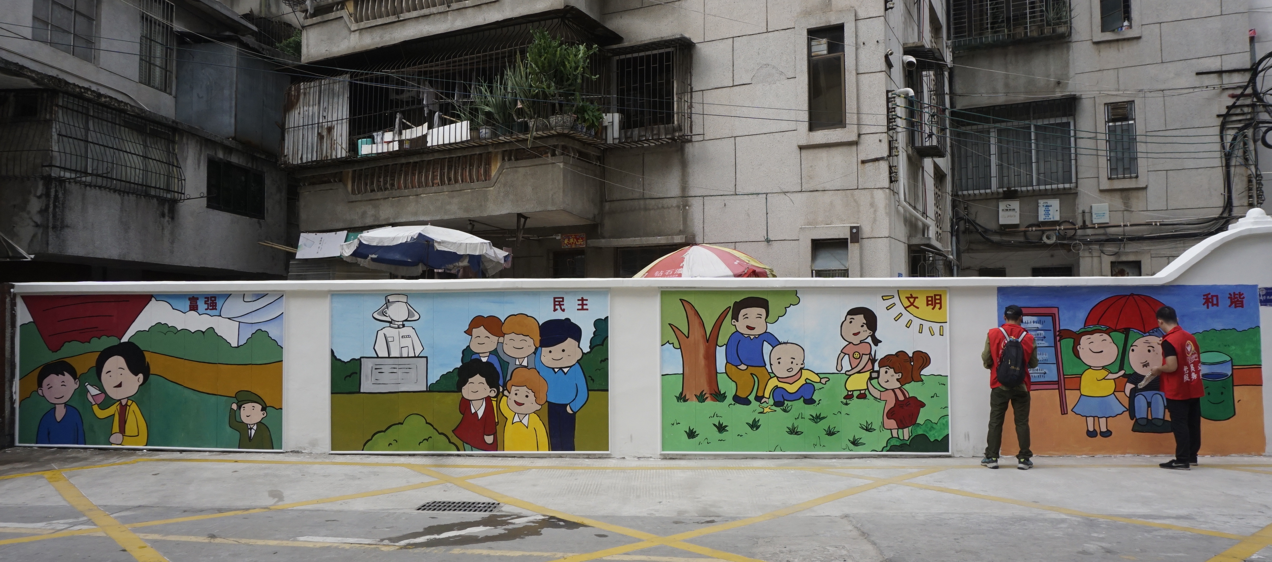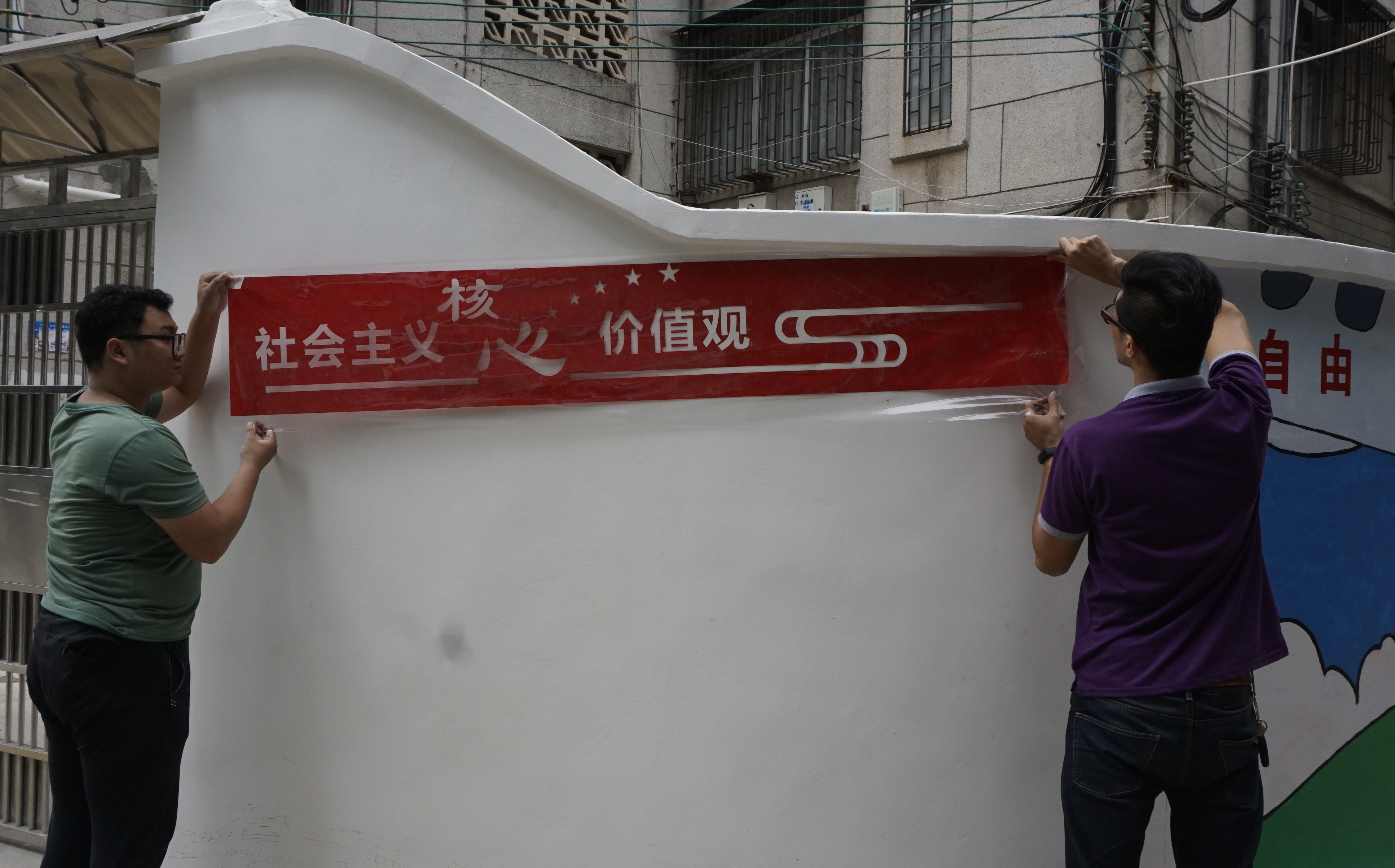 近日,不少細(xì)心的市民發(fā)現(xiàn),開平市開華路一住宅樓破舊的外墻上正在增加一幅幅別具創(chuàng)意的宣傳圖畫,讓“創(chuàng)文”更加深入人心。 10月15日上午,記者在現(xiàn)場(chǎng)看到,文化墻正在進(jìn)行收尾工作,教師義工為漫畫進(jìn)行添色、修補(bǔ),并貼上社會(huì)主義核心價(jià)值觀標(biāo)語(yǔ)。 為深入開展創(chuàng)建全國(guó)文明城市活動(dòng),市創(chuàng)文辦聯(lián)合市相關(guān)部門單位,對(duì)該住宅樓外墻進(jìn)行重新粉刷,并組織忠源紀(jì)念中學(xué)和教倫中學(xué)10多名教師義工,利用節(jié)假日,在墻上繪制漫畫和標(biāo)語(yǔ),歷時(shí)20天建成這面宣傳文化墻。 色彩繽紛的圖畫配上文字組成的文化墻,令人耳目一新,吸引了不少過(guò)往的市民駐足觀賞。 通過(guò)藝術(shù)與文化的氛圍來(lái)美化街道環(huán)境,讓墻壁“說(shuō)話”,讓其成為傳播文化的新載體、倡導(dǎo)文明的新窗口、廣大群眾文明素質(zhì)教育的新陣地,形成人人參與創(chuàng)文,人人共促文明的良好氛圍。