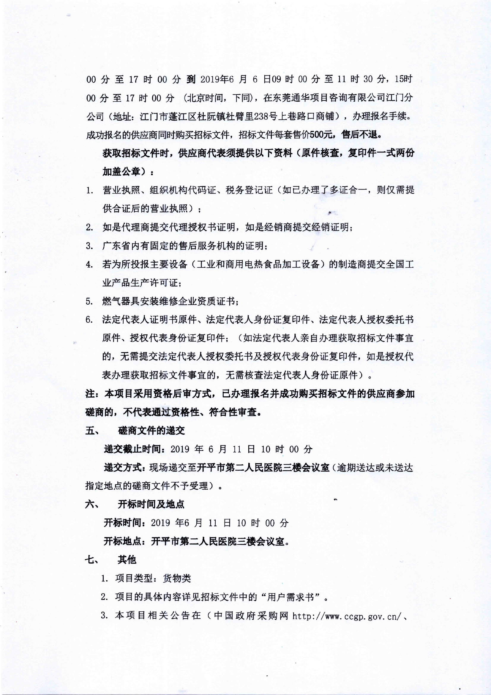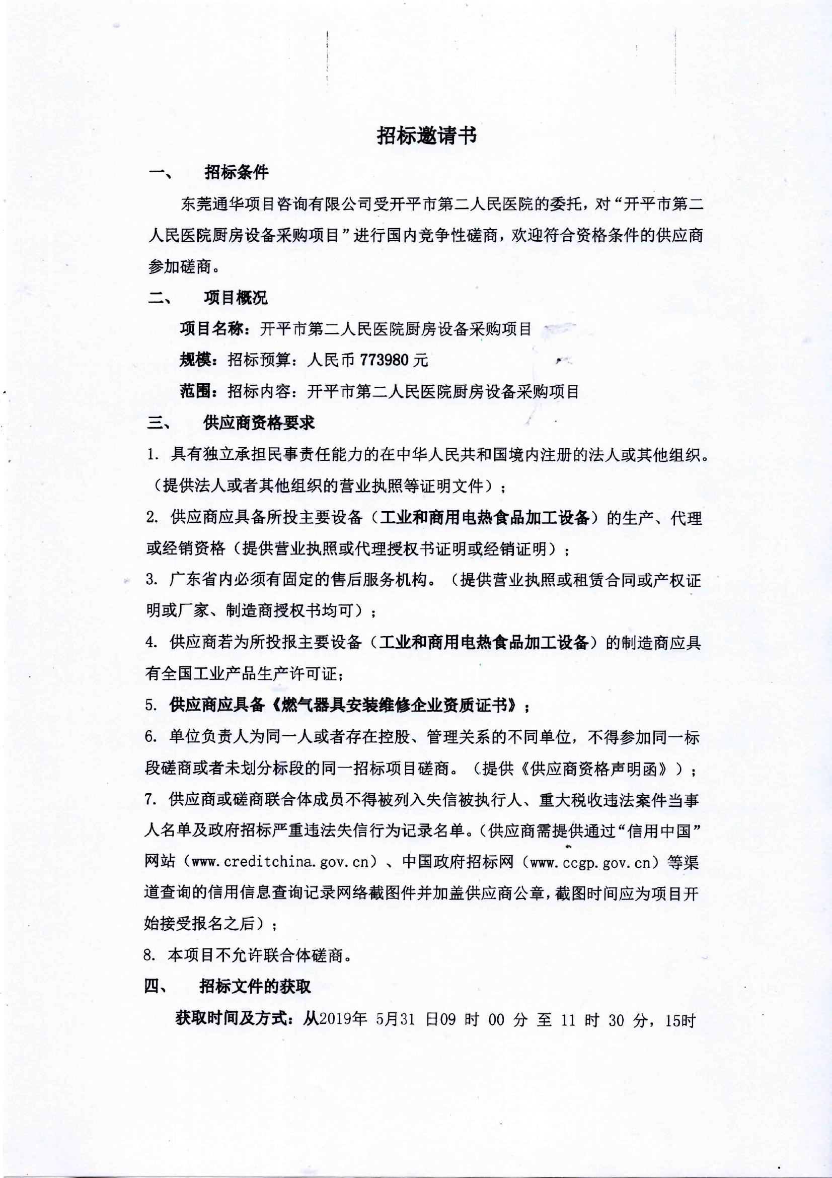 招標(biāo)邀請書(開平市第二人民醫(yī)院廚房設(shè)備采購項(xiàng)目)