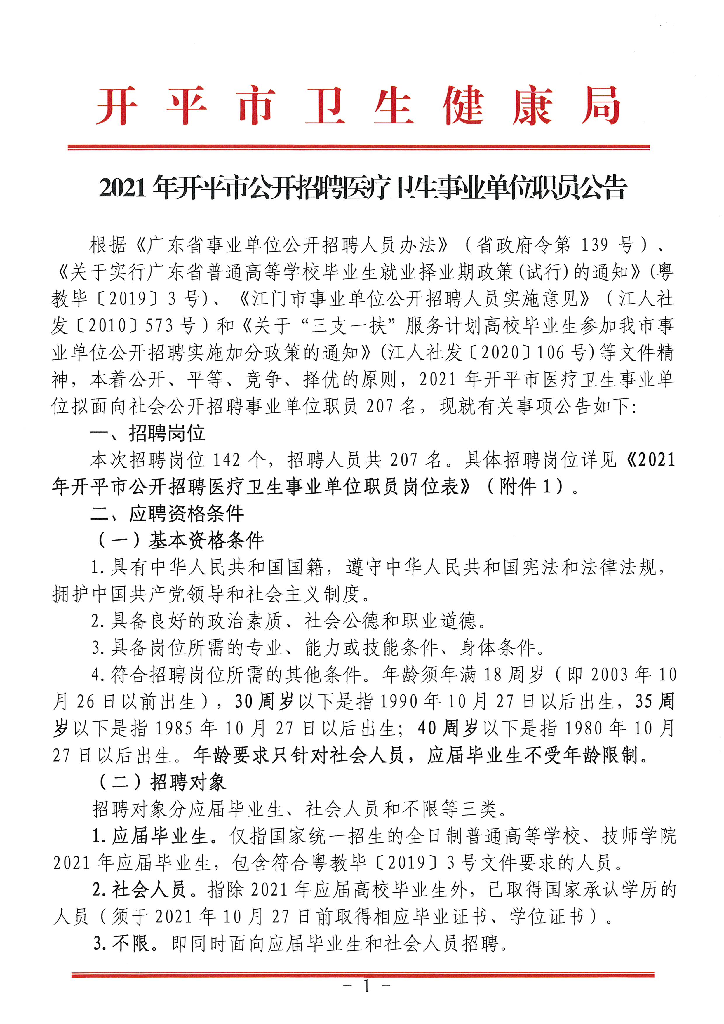 2021年開平市公開招聘醫(yī)療衛(wèi)生事業(yè)單位職員公告
