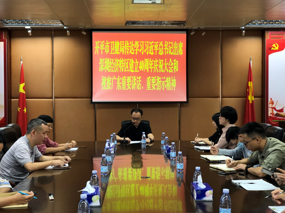 10月23日上午,開平市衛(wèi)生健康局組織開展深入學(xué)習(xí)貫徹習(xí)近平總書記在深圳經(jīng)濟(jì)特區(qū)建立40周年慶祝大會(huì)上的重要講話精神、重要指示精神,局全體同志參加會(huì)議。 會(huì)議強(qiáng)調(diào),要認(rèn)真學(xué)習(xí)領(lǐng)會(huì)習(xí)近平總書記出席深圳經(jīng)濟(jì)特區(qū)建立40周年慶祝大會(huì)和視察廣東重要講話、重要指示精神的重大意義、精神實(shí)質(zhì)和豐富內(nèi)涵,切實(shí)把思想和行動(dòng)統(tǒng)一到習(xí)近平總書記重要講話、重要指示精神上來,切實(shí)增強(qiáng)“四個(gè)意識(shí)”、堅(jiān)定“四個(gè)自信”、做到“兩個(gè)維護(hù)”。 會(huì)議要求,要結(jié)合全市衛(wèi)生健康工作的新形勢、新任務(wù)、新情況,學(xué)習(xí)復(fù)制特區(qū)改革經(jīng)驗(yàn),全力支持深圳先行示范區(qū)建設(shè),在深入推進(jìn)粵港澳大灣區(qū)建設(shè)上持續(xù)發(fā)力,搶抓機(jī)遇,實(shí)現(xiàn)互利共贏。要不斷堅(jiān)持黨的領(lǐng)導(dǎo),強(qiáng)化黨建引領(lǐng);要貫徹新發(fā)展理念,推動(dòng)衛(wèi)生健康事業(yè)高質(zhì)量發(fā)展;要全面深化改革,推動(dòng)新醫(yī)改駛?cè)敫燔嚨?;要踐行以人民為中心,著力緩解“看病難、看病貴”的問題,為人民群眾提供更優(yōu)質(zhì)、廉價(jià)、便捷的衛(wèi)生健康服務(wù)。要盡快推動(dòng)形成一批推動(dòng)工作落實(shí)的硬招實(shí)招,把中央、省、江門及我市的各項(xiàng)決策部署落到最實(shí)最細(xì)處,全力開創(chuàng)開平衛(wèi)生健康工作新局面,為新時(shí)代經(jīng)濟(jì)社會(huì)發(fā)展作出應(yīng)有貢獻(xiàn)。