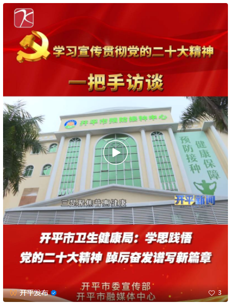 來源:開平發(fā)布 黨的二十大勝利召開以來,開平市衛(wèi)生健康局全面貫徹落實(shí)黨的二十大精神,堅(jiān)持把保障人民健康放在優(yōu)先發(fā)展的戰(zhàn)略位置,持續(xù)推進(jìn)“健康開平”建設(shè),建立生育支持政策體系,促進(jìn)中醫(yī)藥傳承創(chuàng)新發(fā)展,健全公共衛(wèi)生體系,加強(qiáng)重大疫情防控救治體系和應(yīng)急能力建設(shè),確保黨的二十大精神在開平衛(wèi)生健康系統(tǒng)落地生根、開花結(jié)果。 堅(jiān)持以黨建為統(tǒng)領(lǐng) 開平市衛(wèi)生健康局黨組書記、局長黃奕強(qiáng)表示,市衛(wèi)生健康局始終將黨建工作貫穿于衛(wèi)生健康工作的全過程,堅(jiān)持以人民群眾健康為中心,做到黨建工作與醫(yī)療業(yè)務(wù)共促雙贏,全力打造人民群眾滿意的衛(wèi)生健康事業(yè)。 勇于改革創(chuàng)新 持續(xù)深化醫(yī)改和醫(yī)共體建設(shè),推動(dòng)醫(yī)療資源提質(zhì)擴(kuò)容,激發(fā)衛(wèi)生健康事業(yè)發(fā)展新的活力。大力推動(dòng)公立醫(yī)院高質(zhì)量發(fā)展,持續(xù)優(yōu)化醫(yī)療衛(wèi)生機(jī)構(gòu)基礎(chǔ)設(shè)施條件,改善群眾就醫(yī)環(huán)境。利用遠(yuǎn)程診療系統(tǒng)和組團(tuán)式幫扶,讓群眾在本地即可享受上級(jí)三甲醫(yī)院診療服務(wù),著力解決看病難問題。 聚焦普惠健康 更加注重預(yù)防為主和健康促進(jìn),加強(qiáng)突發(fā)公共衛(wèi)生事件防控和救治能力建設(shè),提高突發(fā)傳染病監(jiān)測(cè)和處置能力;扎實(shí)做好“一老一小”和婦幼健康服務(wù),探索發(fā)展多形式、高效率的醫(yī)養(yǎng)結(jié)合模式,提升老年健康服務(wù)水平,并持續(xù)深入開展愛國衛(wèi)生運(yùn)動(dòng),不斷滿足人民群眾日益增長的健康需求,切實(shí)保障人民群眾全生命周期健康。