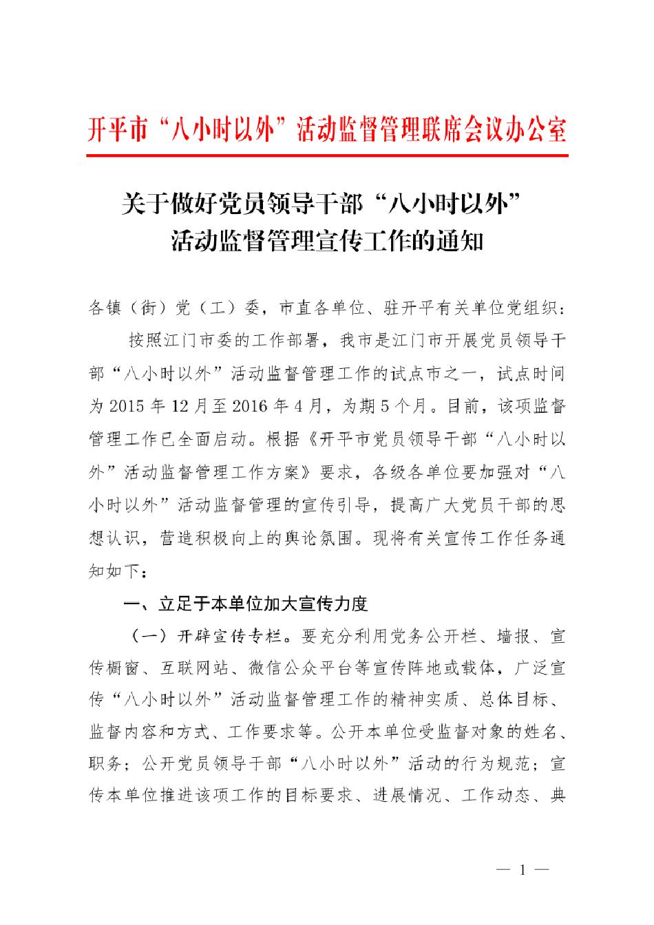 【工作文件】關(guān)于做好黨員領(lǐng)導(dǎo)干部“八小時(shí)以外”活動監(jiān)督管理宣傳工作的通知