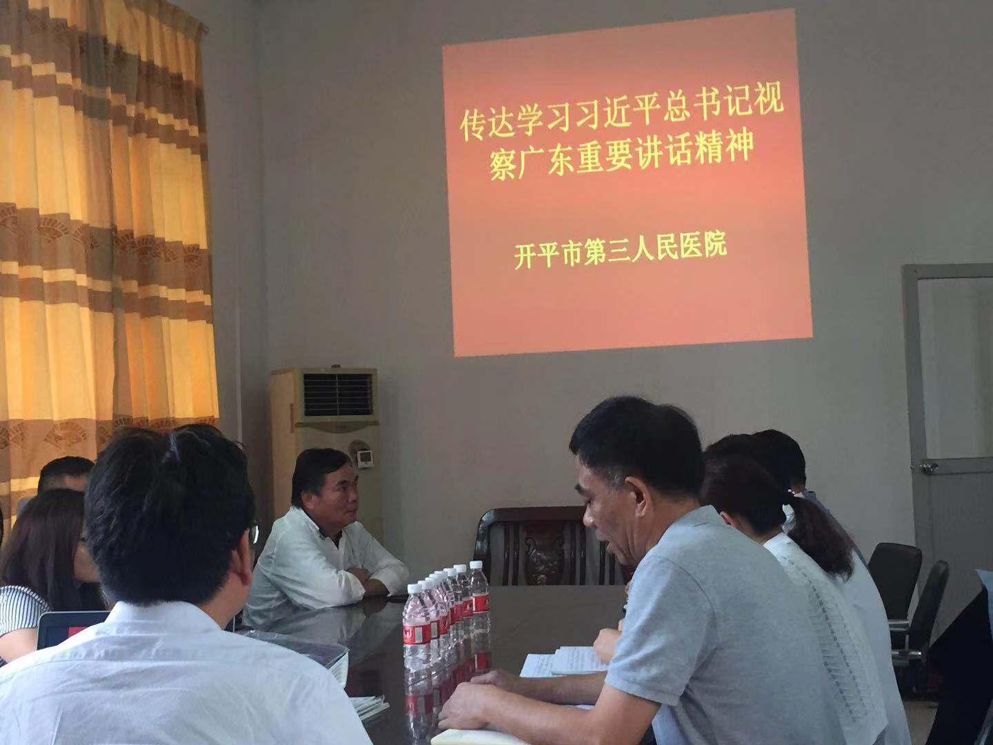 為進(jìn)一步強(qiáng)化對黨員干部的學(xué)習(xí)教育,營造良好的學(xué)習(xí)氛圍,11月6日下午,開平市衛(wèi)生和計(jì)劃生育局黨組副書記謝樹武同志到市第三人民醫(yī)院進(jìn)行培訓(xùn)交流。并與院黨支部召開座談會(huì),聽取今年黨務(wù)工作的開展情況和部署下一步的工作計(jì)劃。 會(huì)上,謝書記傳達(dá)習(xí)近平總書記視察廣東重要講話精神,從而對市三院的黨員干部提出三點(diǎn)工作要求:一是要迅速興起宣傳學(xué)習(xí)的熱潮,讓總書記的重要講話精神傳達(dá)到職工中去,提高知曉率;二是黨支部要認(rèn)真開展各項(xiàng)學(xué)習(xí)宣教,通過形式多樣的活動(dòng)使黨員干部深入學(xué)習(xí),領(lǐng)會(huì)總書記重要講話的精神實(shí)質(zhì),不斷武裝頭腦,推動(dòng)工作;三是黨員干部要做好模范帶頭作用,真抓實(shí)干,不斷提高業(yè)務(wù)水平,始終堅(jiān)持以為人民服務(wù)的理念,為群眾辦實(shí)事。 隨后,市三院院長張振東對總書記重要講話精神談了心得體會(huì),并匯報(bào)了近期醫(yī)院黨務(wù)工作的開展情況,表示下一階段,我院支部將積極通過實(shí)踐培訓(xùn)、參加講座培訓(xùn)班、網(wǎng)上學(xué)習(xí)等形式多樣的學(xué)習(xí),形成黨員們自覺、長期的學(xué)習(xí)氛圍。使黨員們能在學(xué)習(xí)中不斷強(qiáng)化意識(shí),從而樹立過硬的政治素質(zhì)和黨性觀念。接著,與會(huì)人員圍繞如何開展下一階段的黨建工作與謝書記進(jìn)行交流和探討。