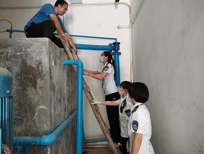 ----市衛(wèi)生監(jiān)督所開展二次供水衛(wèi)生監(jiān)督檢查 為進一步加強二次供水衛(wèi)生監(jiān)管,及時發(fā)現(xiàn)和消除生活飲用水衛(wèi)生安全隱患,市衛(wèi)生監(jiān)督所近期對轄區(qū)內(nèi)10間二次供水單位開展了衛(wèi)生監(jiān)督檢查行動。 本次行動重點對二次供水單位供水管理人員健康合格證明持證情況和供水設(shè)施防護維護、水池(水箱)定期清洗消毒和水質(zhì)檢測情況等內(nèi)容進行檢查,衛(wèi)生監(jiān)督員對存在問題的二次供水單位下達(dá)了衛(wèi)生監(jiān)督意見書,要求當(dāng)事人限期進行整改。同時,衛(wèi)生監(jiān)督員還現(xiàn)場進行飲用水衛(wèi)生安全知識宣傳,指導(dǎo)二次供水單位完善供水衛(wèi)生管理制度、檔案和應(yīng)急預(yù)案等。通過本次檢查,有效提高我市二次供水單位飲水安全責(zé)任意識,有力地促進供水單位衛(wèi)生管理措施的落實。 下一步,市衛(wèi)生監(jiān)督所將持續(xù)加大對轄區(qū)二次供水單位的監(jiān)督執(zhí)法力度,確保我市廣大群眾用上放心安全的生活飲用水。