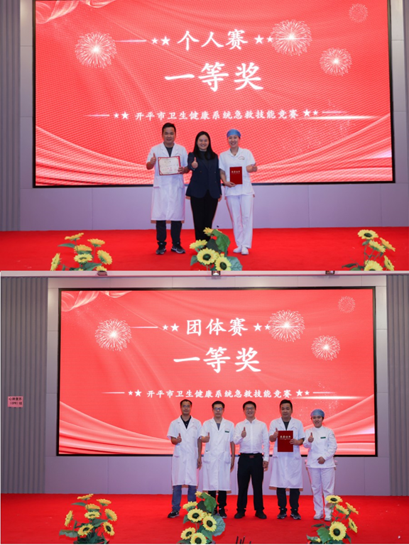 為充分調(diào)動(dòng)我市急救工作者立足本職、刻苦鉆研業(yè)務(wù)技術(shù)、提高急救醫(yī)療服務(wù)水平及突發(fā)公共衛(wèi)生事件應(yīng)急處理能力,11月14日下午,開平市衛(wèi)生健康局、開平市總工會(huì)于中心醫(yī)院門診樓五樓會(huì)議室聯(lián)合舉辦全市衛(wèi)生健康系統(tǒng)急救技能競賽,來自各市直、基層醫(yī)療機(jī)構(gòu)的22名選手參加了個(gè)人賽,14支隊(duì)伍參加了團(tuán)隊(duì)賽。市總工會(huì)副主席李好林、市衛(wèi)生健康局副局長蘇黎明以及各有關(guān)醫(yī)療機(jī)構(gòu)領(lǐng)導(dǎo)嘉賓出席了本次活動(dòng)。 開平市衛(wèi)生健康系統(tǒng)急救技能競賽 獲獎(jiǎng)名單 個(gè)人賽: 一等獎(jiǎng): 梁永權(quán)(開平市中心醫(yī)院) 關(guān)秀滿(開平市中醫(yī)院) 二等獎(jiǎng): 鄧榮澤(開平市三埠街道辦事處社區(qū)衛(wèi)生服務(wù)中心) 謝 輝(開平市中心醫(yī)院) 林俊彬(開平市第二人民醫(yī)院) 陳景麗(開平市水口醫(yī)院) 三等獎(jiǎng): 廖明財(cái)(開平市第二人民醫(yī)院) 郭浩楓(開平市蒼城鎮(zhèn)中心衛(wèi)生院) 何燕輝(開平市長沙街道辦事處社區(qū)衛(wèi)生服務(wù)中心) 羅偉松(開平市馬岡鎮(zhèn)衛(wèi)生院) 朱建垚(開平市水口醫(yī)院) 陳偉勝(開平市赤水鎮(zhèn)衛(wèi)生院) 施建全(開平市金雞鎮(zhèn)衛(wèi)生院) 陳淼鴻(開平市蜆岡鎮(zhèn)衛(wèi)生院) 團(tuán)體賽: 一等獎(jiǎng): 開平市中心醫(yī)院 二等獎(jiǎng): 開平市第二人民醫(yī)院 開平市中醫(yī)院 三等獎(jiǎng): 開平市蒼城鎮(zhèn)中心衛(wèi)生院 開平市三埠街道辦事處社區(qū)衛(wèi)生服務(wù)中心 開平市大沙鎮(zhèn)衛(wèi)生院