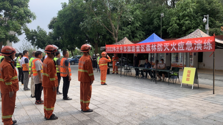 為確保國慶、重陽節(jié)開平市森林防火安全,結(jié)合市森林防火宣傳月活動,9月23日下午,開平市森林防滅火指揮部辦公室組織應(yīng)急管理局、林業(yè)局、城管局、文廣旅體局、森林消防大隊(duì)、園林處、博物館等單位,在梁金山公園月光曲平臺開展“2022年開平市旅游景區(qū)森林防滅火應(yīng)急演練”,全面檢驗(yàn)森林防滅火隊(duì)伍應(yīng)對旅游景區(qū)突發(fā)森林火災(zāi)的實(shí)操能力,以提升森林防滅火隊(duì)伍的規(guī)范化、專業(yè)化水平,本次參演觀摩人數(shù)共計(jì)60人。 9月23日15:00,采用模擬情景和手把手培訓(xùn)的形式,開展旅游景區(qū)森林防滅火應(yīng)急演練,演練內(nèi)容有水帶鋪設(shè)、撤收、滅火機(jī)具操作與維護(hù)、撲火安全培訓(xùn)和模擬撲救山火等,經(jīng)多方努力,順利完成應(yīng)急演練的每一個(gè)環(huán)節(jié),通過現(xiàn)場的模擬演練進(jìn)一步考驗(yàn)了我市山火撲救能力和現(xiàn)場指揮調(diào)度能力,增強(qiáng)我市旅游景區(qū)救援隊(duì)伍的森林防火意識和協(xié)同作戰(zhàn)能力。 此次培訓(xùn)演練按照實(shí)戰(zhàn)場景設(shè)置了前線和后方指揮部,利用手機(jī)一鍵通、小魚單兵和無人機(jī)4G圖傳等系統(tǒng)進(jìn)行連線調(diào)度,檢驗(yàn)了現(xiàn)場與后方指揮信息互通、決策傳達(dá)和應(yīng)急聯(lián)動機(jī)制的效果,進(jìn)一步完善我市森林火災(zāi)應(yīng)急處置指揮機(jī)制。
