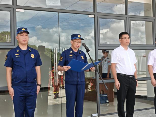 8月21日上午,國(guó)家消防救援局廣東消防救援機(jī)動(dòng)總隊(duì)進(jìn)駐江門市開平市赤水機(jī)場(chǎng)儀式順利舉行。駐防分隊(duì)籌備組黨委委員楊仙永同志、副組長(zhǎng)王少輝同志、江門市應(yīng)急管理局黨委委員、副局長(zhǎng)吳衛(wèi)同志等領(lǐng)導(dǎo)出席儀式,駐防分隊(duì)全體指戰(zhàn)員60人、江門市應(yīng)急管理局、開平市應(yīng)急管理局、開平市林業(yè)局及赤水鎮(zhèn)相關(guān)負(fù)責(zé)人參加本次儀式。 駐防分隊(duì)整隊(duì)報(bào)告后,進(jìn)駐儀式正式開始。首先由江門市應(yīng)急管理局黨委委員、副局長(zhǎng)吳衛(wèi)同志代表江門全市人民對(duì)駐防分隊(duì)的進(jìn)駐表示熱烈歡迎,并對(duì)廣東機(jī)動(dòng)隊(duì)伍在去年開平市月山鎮(zhèn)“10·28”及今年鶴山市宅梧鎮(zhèn)“1·14”森林火災(zāi)中的英勇表現(xiàn)致以崇高敬意。面對(duì)火情,廣東機(jī)動(dòng)隊(duì)伍聞令即動(dòng)、迅速響應(yīng),第一時(shí)間調(diào)集救援力量和物資馳援一線,充分展現(xiàn)了國(guó)家隊(duì)強(qiáng)烈的政治擔(dān)當(dāng)和過硬的專業(yè)素養(yǎng),為撲滅兩起森林火災(zāi)作出重要貢獻(xiàn)。此次駐防進(jìn)一步體現(xiàn)了上級(jí)對(duì)江門及粵西地區(qū)安全穩(wěn)定的高度重視,將進(jìn)一步強(qiáng)化粵港澳大灣區(qū)生態(tài)安全屏障。 隨后駐防分隊(duì)籌備組黨委委員楊仙永同志致辭,他代表籌備組感謝了江門市委、市政府及相關(guān)部門對(duì)隊(duì)伍進(jìn)駐的大力支持,并對(duì)全體作戰(zhàn)員提出期望,一要鐵心向黨,將對(duì)黨忠誠(chéng)落實(shí)到具體行動(dòng)中;二要鐵紀(jì)如山,嚴(yán)格按照“兩嚴(yán)兩準(zhǔn)”要求樹立機(jī)動(dòng)鐵軍的良好形象;三要鐵肩擔(dān)當(dāng),緊盯臺(tái)風(fēng)、洪澇、山火等實(shí)戰(zhàn)需求苦練本領(lǐng);四要鐵志為民,在人民最需要的時(shí)刻逆行而上、沖鋒在前。 進(jìn)駐儀式結(jié)束后,與會(huì)領(lǐng)導(dǎo)一行實(shí)地參觀駐防基地綜合樓、餐廳、宿舍及車輛裝備展示區(qū),詳細(xì)了解營(yíng)區(qū)建設(shè)與后勤保障情況,對(duì)該分隊(duì)高標(biāo)準(zhǔn)、快節(jié)奏的入駐準(zhǔn)備工作給予高度評(píng)價(jià)。此次駐防分隊(duì)的進(jìn)駐標(biāo)志著國(guó)家消防救援力量在我市及粵西地區(qū)的戰(zhàn)略布局進(jìn)一步優(yōu)化,我市應(yīng)急救援隊(duì)伍將與駐防分隊(duì)攜手并肩、合作共進(jìn),以“時(shí)時(shí)放心不下”的責(zé)任感,共同筑牢粵港澳大灣區(qū)生態(tài)安全與人民生命財(cái)產(chǎn)安全的“銅墻鐵壁”,為應(yīng)對(duì)突發(fā)災(zāi)害、守護(hù)綠水青山提供堅(jiān)實(shí)保障。