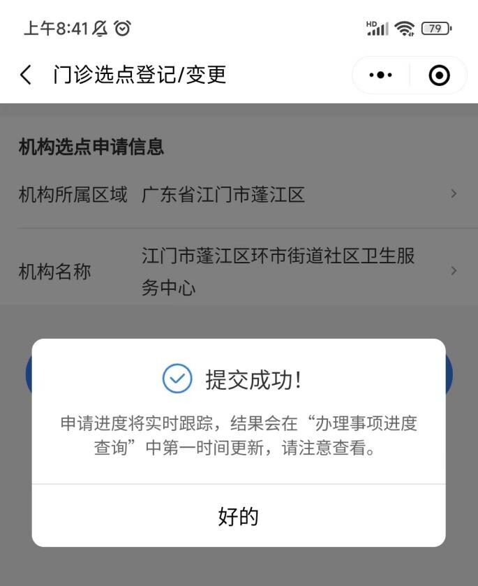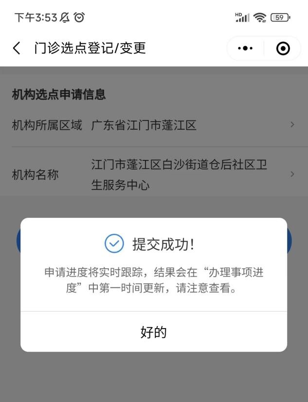 第三步:選擇需要門診選點(diǎn)登記的定點(diǎn)醫(yī)療機(jī)構(gòu),完成后點(diǎn)擊提交,系統(tǒng)顯示“提交成功”,選點(diǎn)結(jié)果信息可在前端頁面展示。