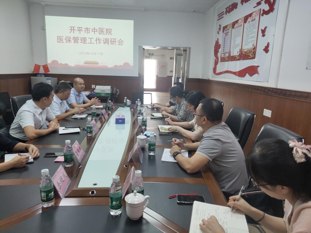 10月17日上午,開(kāi)平市醫(yī)療保障局黨組書記莊冬梅和市政協(xié)副主席、局長(zhǎng)梁榮華帶隊(duì)到市中醫(yī)院就醫(yī)療保障管理工作情況進(jìn)行調(diào)研。市中醫(yī)院黨委副書記、院長(zhǎng)胡敏超及其他領(lǐng)導(dǎo)班子成員參加調(diào)研。