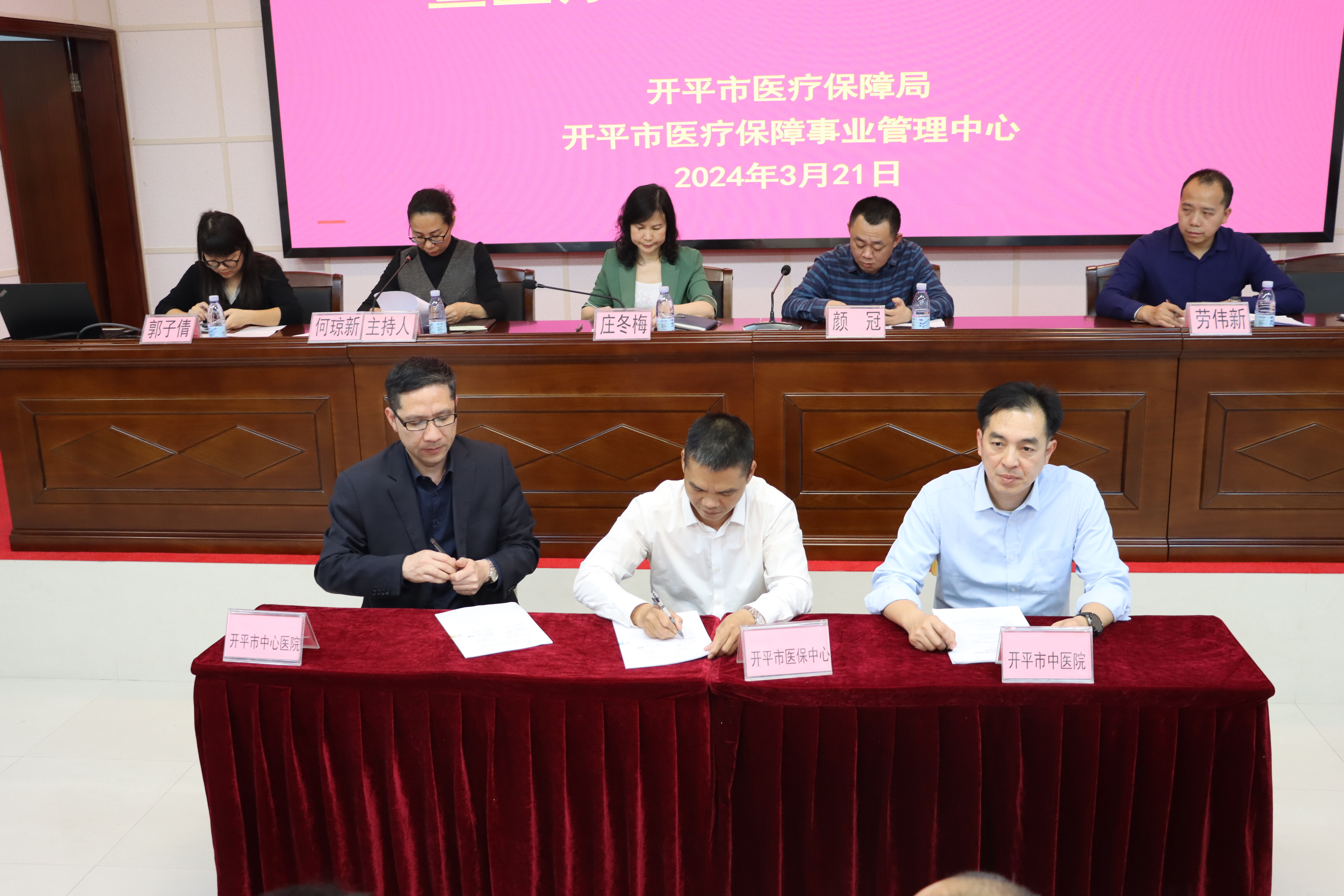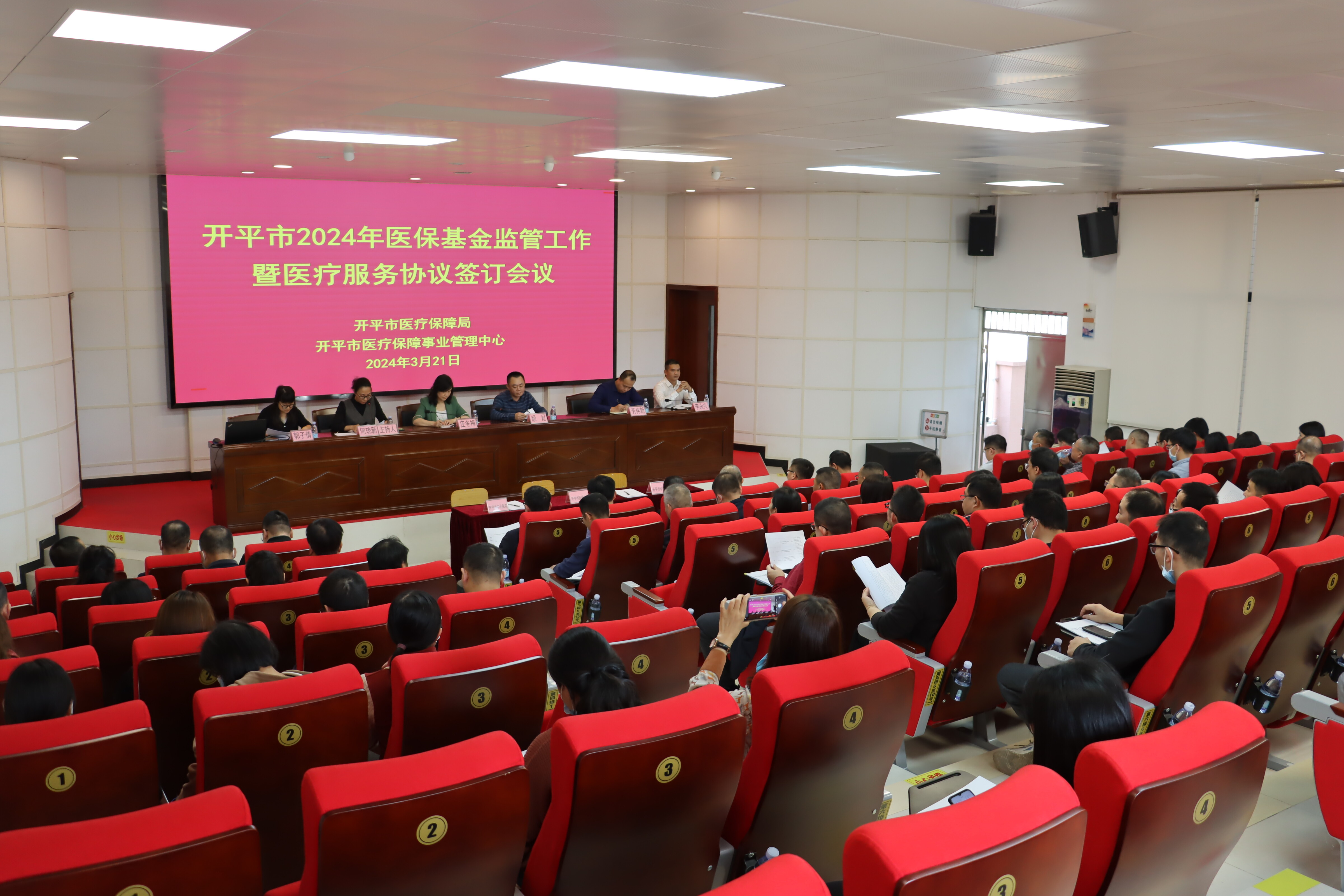 為進(jìn)一步規(guī)范定點(diǎn)醫(yī)療機(jī)構(gòu)醫(yī)療服務(wù)行為,保障參保人員合法權(quán)益,維護(hù)我市醫(yī)?;鸢踩\(yùn)行,3月21日下午,開平市醫(yī)療保障局組織召開2024年醫(yī)?;鸨O(jiān)管工作暨醫(yī)療服務(wù)簽訂會(huì)議。市醫(yī)保局領(lǐng)導(dǎo)班子成員、衛(wèi)健局分管領(lǐng)導(dǎo)、各定點(diǎn)醫(yī)療機(jī)構(gòu)有關(guān)領(lǐng)導(dǎo)及工作人員共90余人參加了會(huì)議。會(huì)議對(duì)我市2023年度醫(yī)?;鸨O(jiān)管情況進(jìn)行總結(jié),通報(bào)表揚(yáng)2023年開平市醫(yī)保工作先進(jìn)單位和個(gè)人,以及我市2023年度基本醫(yī)療保險(xiǎn)和生育保險(xiǎn)等級(jí)考評(píng)情況,并與中心醫(yī)院、中醫(yī)院法人現(xiàn)場簽訂《2024年定點(diǎn)醫(yī)療機(jī)構(gòu)服務(wù)協(xié)議》。