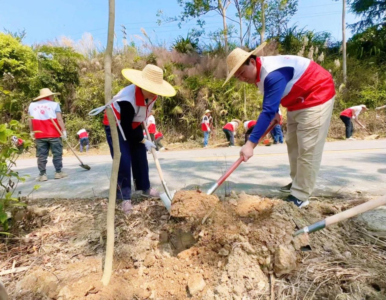 植樹迎全運,零碳繪綠美。為深入貫徹落實省委“百縣千鎮(zhèn)萬村高質(zhì)量發(fā)展工程”和“綠美廣東生態(tài)建設(shè)”工作部署,3月21日上午,市農(nóng)控集團公司以全運會為契機,聯(lián)合大沙鎮(zhèn)共同開展“我為全運種棵樹”主題植樹活動。共約80名黨員干部、團員青年、職工、志愿者參與活動,以植樹行動助力綠色全運。 植樹活動在大沙鎮(zhèn)788鄉(xiāng)道夾水村段舉行?;顒蝇F(xiàn)場,大家熱情高漲,共同鏟土扶苗、揮鍬培土、踩土固苗、澆水灌溉,為200棵紫花風(fēng)鈴在此“安家落戶”。初春時節(jié),新種下的樹苗與一旁的河涌藍天相映成趣,孕育著無限生機。 下一步,農(nóng)控集團公司將勇?lián)G色發(fā)展的使命,進一步凝聚共識、匯聚力量,持續(xù)推進綠美生態(tài)建設(shè),為實現(xiàn)生態(tài)環(huán)境的優(yōu)化和國有企業(yè)高質(zhì)量發(fā)展注入源源不斷的動力,扎實推進奮戰(zhàn)“百千萬工程”。