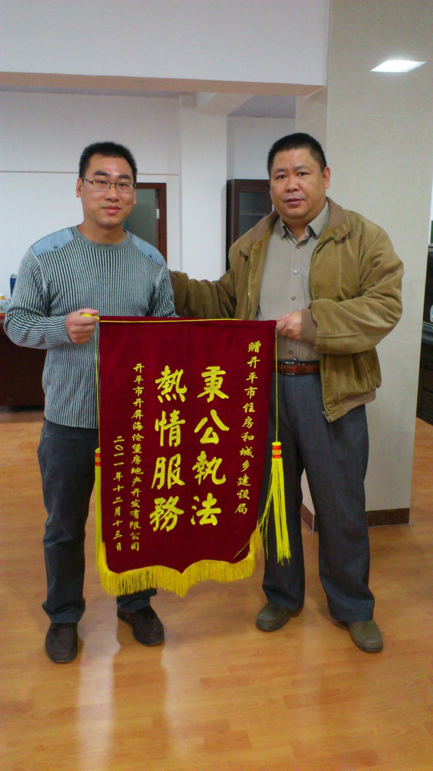 市住建局狠抓機關(guān)作風建設(shè),優(yōu)化投資發(fā)展軟環(huán)境,得到服務(wù)對象贈送錦旗表揚。12月21日,開屏海倫堡房地產(chǎn)開發(fā)有限公司員工分別來到市住建局和住建局駐市行政服務(wù)中心窗口,將寫有“秉公執(zhí)法,熱情服務(wù)”、“主動高效,服務(wù)優(yōu)良”的錦旗,贈送給住建局和服務(wù)窗口,感謝其提供的熱情服務(wù)。