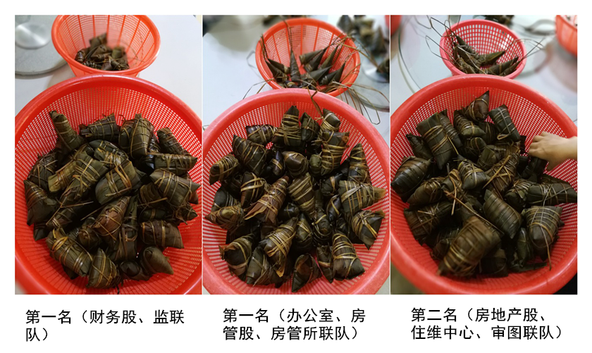 包粽子比賽分成三隊(duì),在規(guī)定時(shí)間內(nèi)所包粽子數(shù)量最多且質(zhì)量過(guò)關(guān)的隊(duì)別獲勝。比賽開(kāi)始之前,大家就迫不及待地動(dòng)手試著包起了粽子,熟練的人員向初學(xué)人員演示包粽子的步驟,初學(xué)的人員包好粽子讓熟練人員指點(diǎn),包出的粽子形態(tài)各異,大家忍不住發(fā)出陣陣笑聲。比賽開(kāi)始,大家卷粽葉、填餡料、捆繩子,包得不亦樂(lè)乎,現(xiàn)場(chǎng)歡聲笑語(yǔ)不斷,其樂(lè)融融。經(jīng)過(guò)一番激烈的角逐,由評(píng)委根據(jù)數(shù)量、質(zhì)量等對(duì)各隊(duì)包的粽子進(jìn)行認(rèn)真、細(xì)致的評(píng)選,最終評(píng)選出兩個(gè)并列第一名和一個(gè)第二名。此次比賽促進(jìn)了干部職工之間的交流、傳承了傳統(tǒng)手藝,讓大家感受到了溫馨濃厚的節(jié)日氛圍。