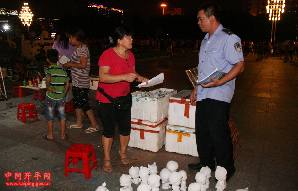 9月26日晚上,市公用事業(yè)管理局組織城管股和城監(jiān)大隊(duì)向人民公園、長沙公園、城市廣場、步行街亂擺賣、卡拉OK等相關(guān)經(jīng)營者派發(fā)整改《通知》并進(jìn)行耐心勸說,要求經(jīng)營者自行改正違章行為。