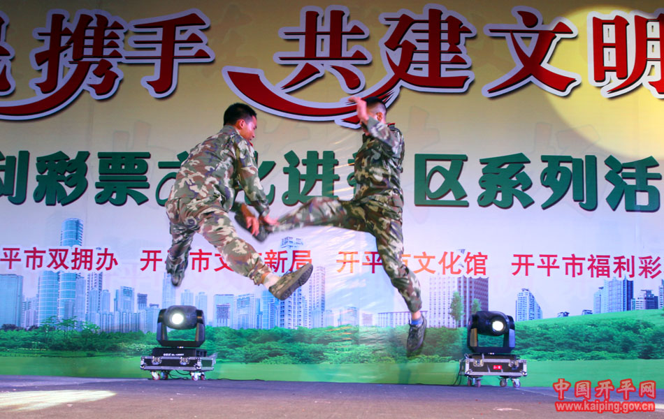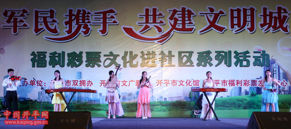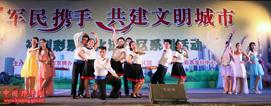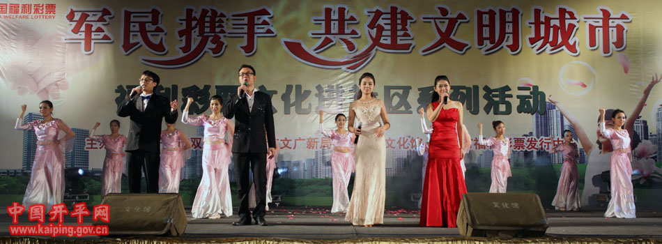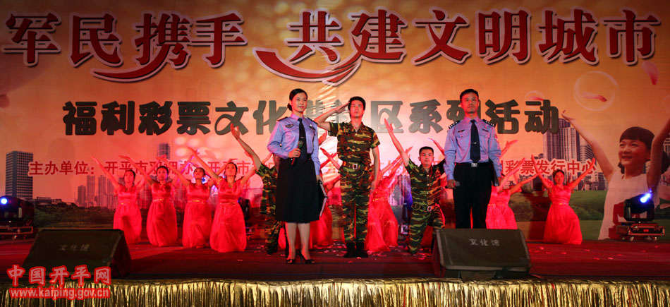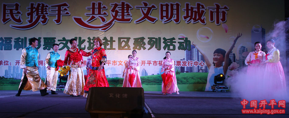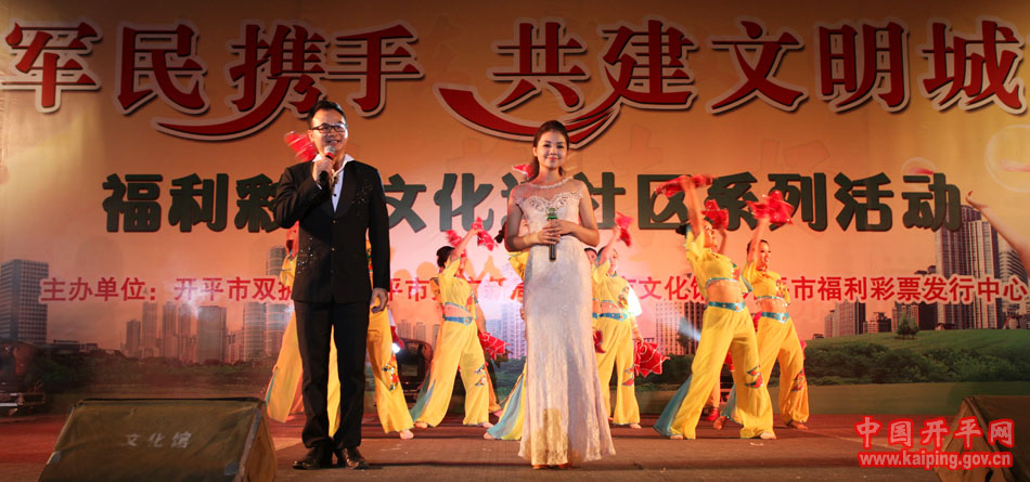 特別是在5日晚的“軍民攜手·共建文明城市—福利彩票文化進(jìn)社區(qū)系列活動”中上演的開平民歌《洋妹喜嫁開平郎》,更是贏得現(xiàn)場觀眾的好評。該節(jié)目是用賣雞調(diào)、夾房歌、禾樓歌等豐富的開平民歌音樂結(jié)合地方傳統(tǒng)婚慶禮儀,講述了美國姑娘洋妹與“開平仔”在美國同窗四年,共同研究建筑史,在研討“開平碉樓的保護(hù)工作”中志同道合,共諧連理,洋妹嫁到開平來的故事,進(jìn)一步展現(xiàn)了開平民歌深厚的文化底蘊和開平碉樓的迷人魅力。