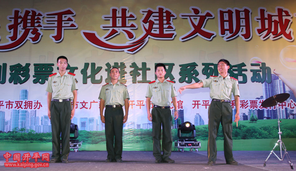 本次文藝宣傳晚會有“曲藝專場”、“軍民攜手·共建文明城市—福利彩票文化進(jìn)社區(qū)系列活動”和“搖滾音樂會”三場,涵蓋了粵曲、小組唱、舞蹈、小品、民歌、搖滾樂等不同形式的表演。演員們以文藝的方式為創(chuàng)建廣東省文明城市加油鼓勁,不時引得現(xiàn)場觀眾共鳴。