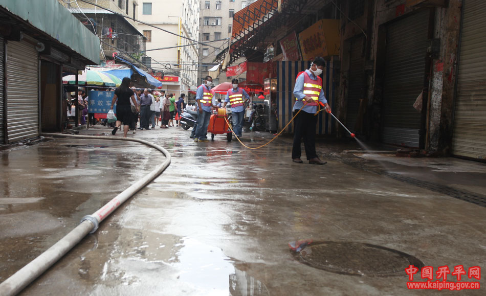 是日上午,市工商局與城監(jiān)大隊、公安局、衛(wèi)生局、農(nóng)業(yè)局、疾控中心、市場物業(yè)管理公司以及長沙街道辦等多部門聯(lián)合執(zhí)法,拉起警戒線,對幸福市場周邊的“三鳥”經(jīng)營鋪位進(jìn)行消毒,用高壓水槍沖洗街道,還市民一個清潔衛(wèi)生的生活環(huán)境。