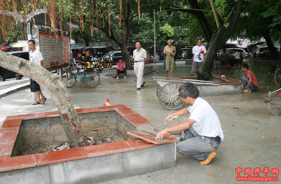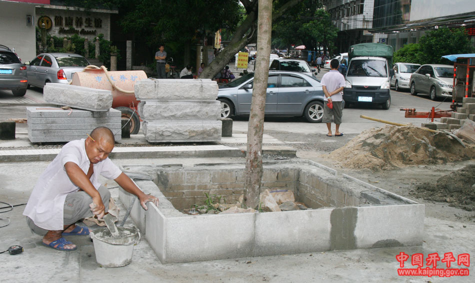 改造前的開華路街心小公園地面凹凸不平,部分地方已破裂,容易積水,樹木側(cè)石已陳舊破損,高低不一,整個公園環(huán)境比較臟亂。為改變舊貌,創(chuàng)造休閑娛樂文明場所,市政府從7月開始對其進行改造。記者在現(xiàn)場看到,本次改造主要是拆除舊地面,重鋪水泥地面,安裝排水管,砌樹木側(cè)石,貼花崗巖板。市園林局有關(guān)負(fù)責(zé)人表示,計劃在小公園內(nèi)設(shè)置石凳及健身器材,爭取7月底完工。