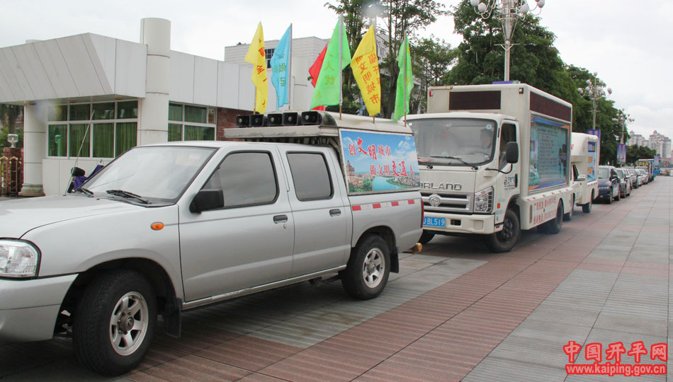 創(chuàng)廣東省文明城市,做文明有禮開(kāi)平人。7月24日下午,市創(chuàng)文辦、市交警大隊(duì)聯(lián)合我市10多家商家在城區(qū)內(nèi)開(kāi)展主題為“文明城市 你我參與”的車隊(duì)巡游宣傳活動(dòng),進(jìn)一步加大我市創(chuàng)文宣傳力度。