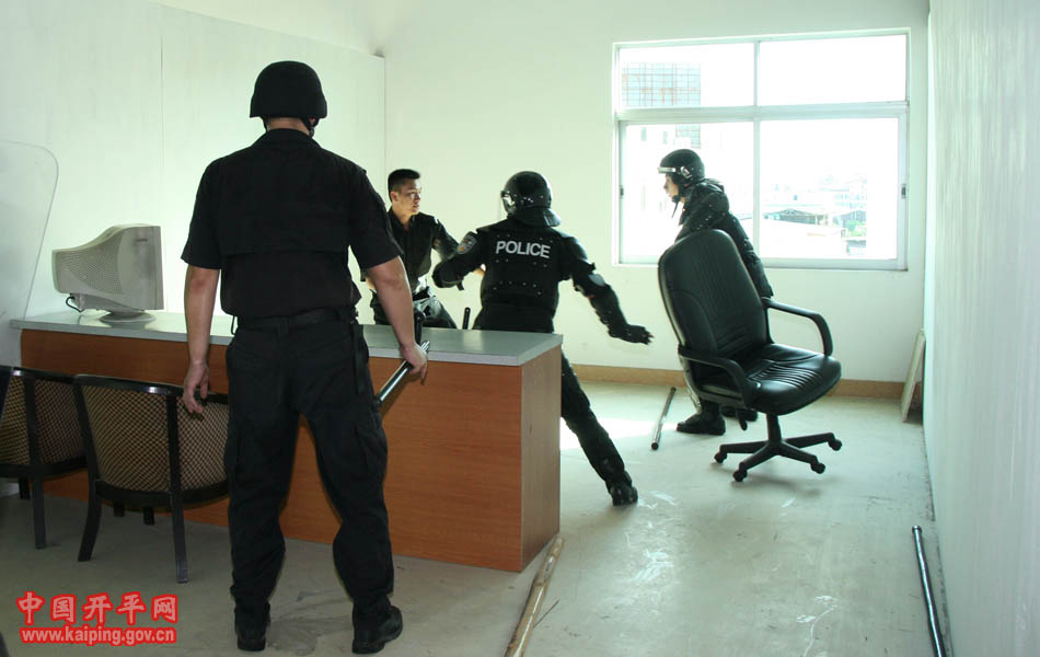 指導(dǎo)特警進(jìn)行防暴術(shù)訓(xùn)練
