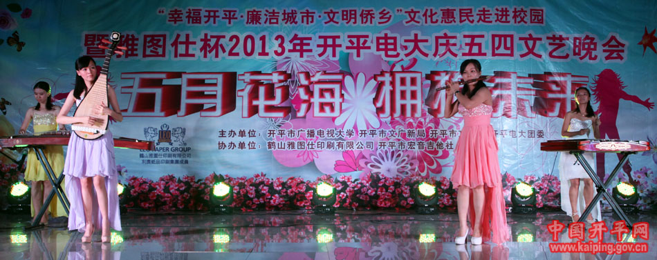 6月3日晚,“幸福開平·廉潔城市·文明僑鄉(xiāng)”文化惠民——走進(jìn)校園活動在開平電大熱鬧上演。市政協(xié)副主席、廣播電視大學(xué)校長關(guān)開宗,市委組織、市文廣局、市文化館等部門領(lǐng)導(dǎo)到場觀看了晚會,并為該校鄉(xiāng)土文化人才培養(yǎng)基地民歌、表演藝術(shù)人才培養(yǎng)示范點揭牌。