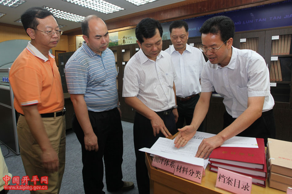 市委書記黃耀雄在聽取創(chuàng)文辦資料組組長(zhǎng)鄺學(xué)良介紹相關(guān)情況后,對(duì)資料整理的規(guī)范表示肯定,贊揚(yáng)其體現(xiàn)僑鄉(xiāng)開平特色的創(chuàng)新做法,鼓勵(lì)資料組工作人員再接再厲,按照創(chuàng)文要求逐步完善資料收集整理工作。