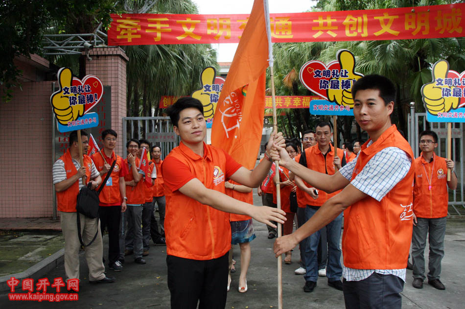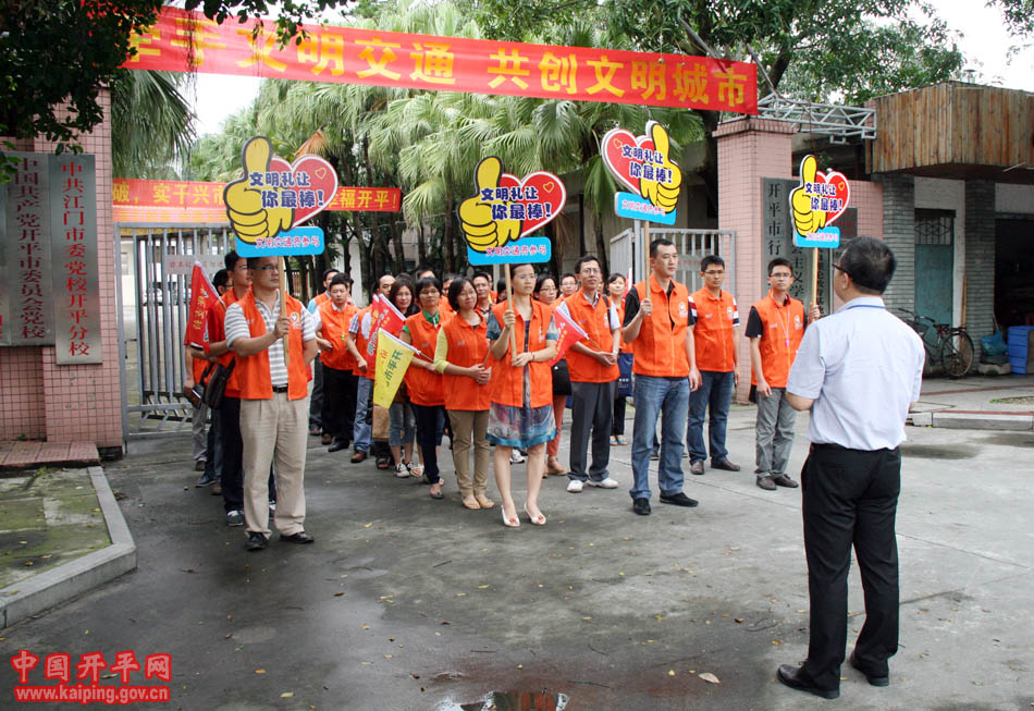5月16日下午,開平市42名中青年干部身穿義工服走上街頭,開展文明交通行為勸導活動,共同為我市創(chuàng)建省文明城市出一份力量。