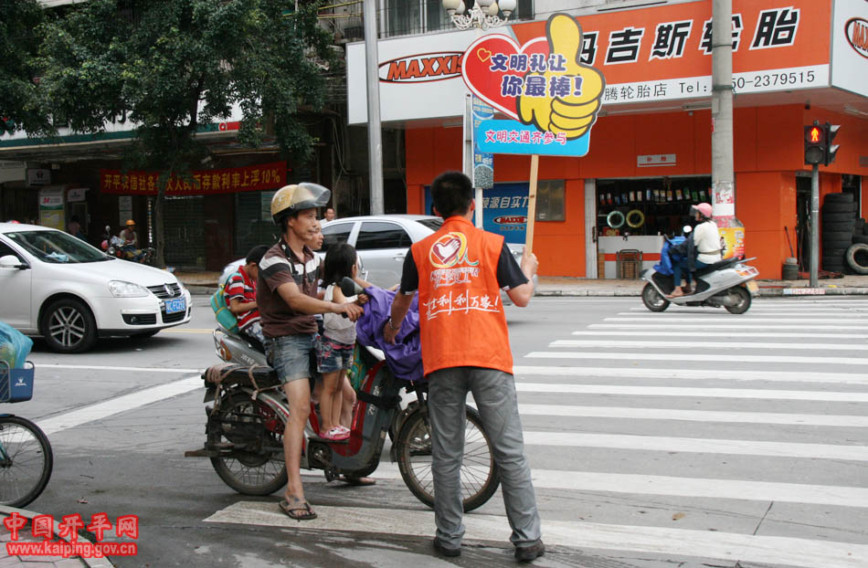 參與活動的中青年干部都是開平市2013年中青年干部培訓二班的學員,他們分成4個小組,分別在幕沙橋頭、開平市汽車總站、僑園路、城市文化廣場南廣場等紅綠燈交通繁忙的路段,對不文明的交通行為進行勸導,引導市民自覺遵守交通規(guī)則,文明出行。