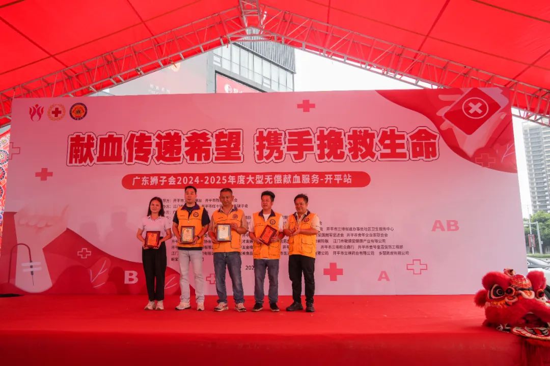 頒獎(jiǎng)環(huán)節(jié)上,主辦單位向廣東獅子會(huì)各服務(wù)隊(duì)頒發(fā)感謝狀,廣東獅子會(huì)五邑服務(wù)隊(duì)向愛心企業(yè)、個(gè)人頒發(fā)感謝狀,感謝他們用拳拳愛心點(diǎn)亮生命之光,以熱血捐贈(zèng)詮釋責(zé)任擔(dān)當(dāng)。