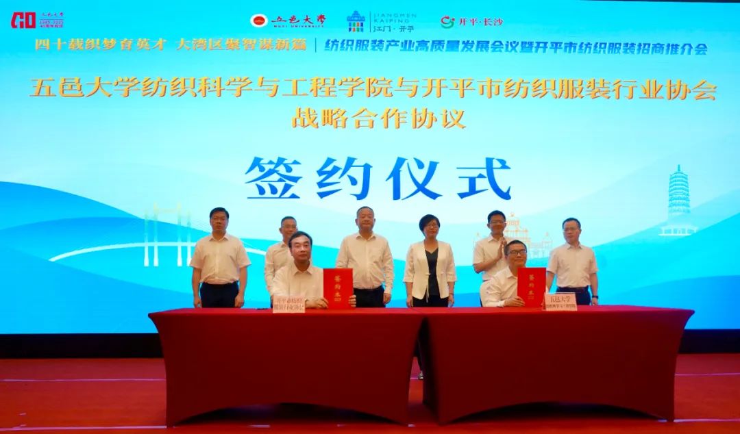紡織服裝產(chǎn)業(yè)的發(fā)展,離不開(kāi)高校的支持。五邑大學(xué)紡織科學(xué)與工程學(xué)院扎根僑鄉(xiāng)沃土,深耕紡織服裝知識(shí)和技術(shù)領(lǐng)域,為開(kāi)平、江門(mén)乃至粵港澳大灣區(qū)培養(yǎng)輸送了大批高素質(zhì)專(zhuān)業(yè)技術(shù)人才,是推動(dòng)產(chǎn)業(yè)轉(zhuǎn)型升級(jí)的“人才搖籃”和“智力寶庫(kù)”。五邑大學(xué)黨委常委、副校長(zhǎng)董超俊表示,今年正值五邑大學(xué)建校40周年,希望學(xué)校繼續(xù)發(fā)揮學(xué)科與科研優(yōu)勢(shì),與開(kāi)平紡織企業(yè)開(kāi)展更深層次、更廣領(lǐng)域的產(chǎn)學(xué)研合作,共同譜寫(xiě)“校地合作、協(xié)同創(chuàng)新”的新篇章。