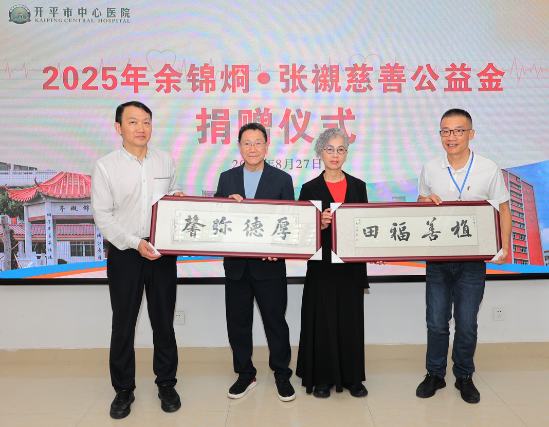 余卓兒先生是旅港著名實業(yè)家、慈善家、開平市榮譽市民,多年來不遺余力支持家鄉(xiāng)醫(yī)療、教育等慈善公益事業(yè),他從2008年開始捐資扶助開平市中心醫(yī)院,并于2015年設立“余錦烱·張襯慈善公益金”,每年捐資支持家鄉(xiāng)慈善公益事業(yè)。截至2024年,余卓兒、林翠薇伉儷累計向開平市中心醫(yī)院捐贈超4000萬元人民幣,促進開平醫(yī)療衛(wèi)生事業(yè)高質(zhì)量發(fā)展。