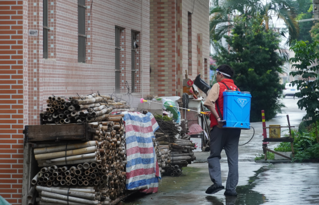 在長(zhǎng)沙街道幕沙社區(qū),社區(qū)工作人員與下沉一線的黨員干部、志愿者緊密協(xié)作,向周邊商戶、住戶普及科學(xué)防蚊滅蚊知識(shí),并協(xié)助居民清除房前屋后的積水、雜物,提醒他們及時(shí)清除蚊子孳生地,從源頭上杜絕病源,保障自身健康。