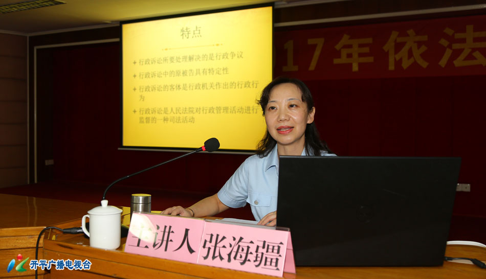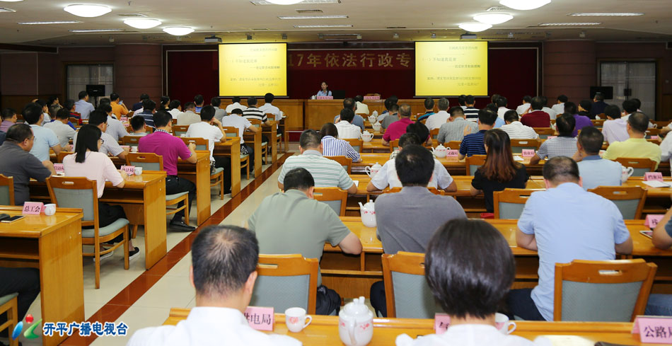 7月27日下午,開平市召開2017年依法行政專題報告會,邀請江門市中級人民法院民三庭庭長張海疆作專題輔導(dǎo)報告,進一步提升依法行政水平,推動法治開平建設(shè)。龐正華、張星杰、李沃華等開平市四套班子領(lǐng)導(dǎo),市法院、市檢察院,各鎮(zhèn)(街道)、翠山湖、市直、駐開平有關(guān)單位等主要負(fù)責(zé)人參加報告會。