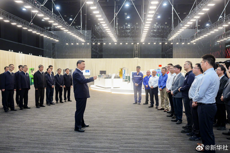 10月17日下午,習(xí)近平總書(shū)記在安徽合肥濱湖科學(xué)城,察看近年來(lái)安徽省重大科技創(chuàng)新成果集中展示,同現(xiàn)場(chǎng)科研人員和企業(yè)負(fù)責(zé)人親切交流。習(xí)近平說(shuō),推進(jìn)中國(guó)式現(xiàn)代化,科技要打頭陣??萍紕?chuàng)新是必由之路。黨中央非常重視和愛(ài)惜科技人才?!叭松苡袔谆夭保蠹乙砰_(kāi)手腳,繼續(xù)努力,為實(shí)現(xiàn)科技自立自強(qiáng)貢獻(xiàn)聰明才智。(文字記者:張曉松 朱基釵;攝影記者:鞠鵬 謝環(huán)馳)