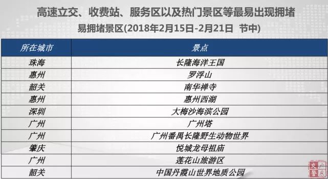 佛山羅格收費站、勒流收費站,廣州三元里收費站、廣園收費站,清遠(yuǎn)西收費站。高速公路易堵服務(wù)區(qū)中,高峰期擁堵嚴(yán)重的是惠州長深高速泰美服務(wù)區(qū)、廣州濟(jì)廣高速沙埔服務(wù)區(qū)、肇慶二廣高速龍甫服務(wù)區(qū)、江門沈海高速梁金山服務(wù)區(qū)、河源長深高速熱水服務(wù)區(qū)、茂名沈海高速電白服務(wù)區(qū)。