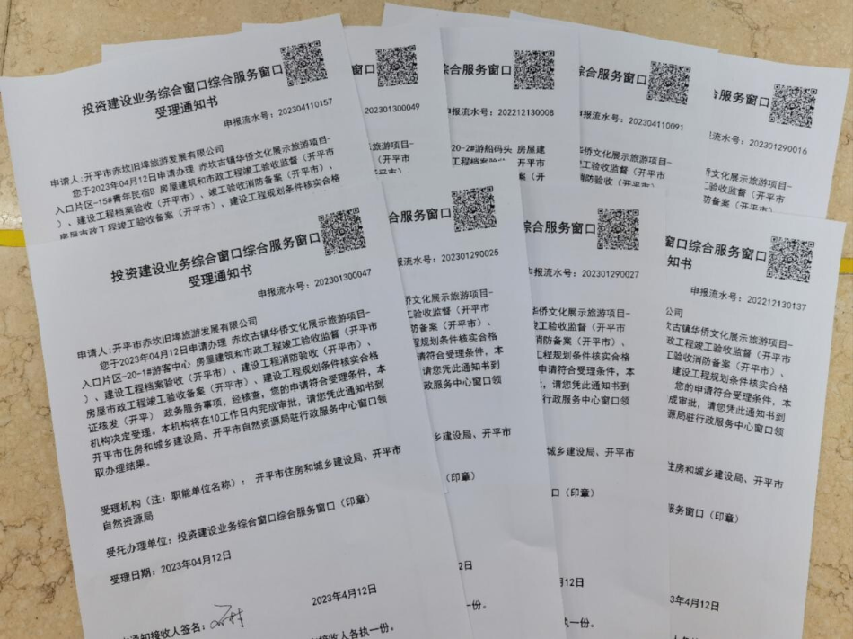 赤坎古鎮(zhèn)項(xiàng)目作為廣東省、江門市重點(diǎn)項(xiàng)目,市行政服務(wù)中心將其作為重點(diǎn)服務(wù)對象,今年1月,中心已深入項(xiàng)目入口片區(qū)16個單體建筑的施工現(xiàn)場,實(shí)地調(diào)研、上門服務(wù),迅速完成2個單體建筑聯(lián)合驗(yàn)收,為赤坎古鎮(zhèn)提前開業(yè)運(yùn)營提供有力的保障。4月12日,“赤坎古鎮(zhèn)文化展示旅游項(xiàng)目-入口片區(qū)-20-2#游船碼頭、22#團(tuán)隊(duì)酒店、21#快捷酒店、20-1#游客中心、18#轉(zhuǎn)角商業(yè)、17#船塢會館、16#橋頭商業(yè)、15#青年民宿B、14#青年民宿A”的9個單體建筑24小時內(nèi)即完成聯(lián)合驗(yàn)收申報(bào),申報(bào)時間縮短80%,大大減輕企業(yè)申報(bào)負(fù)擔(dān)。據(jù)悉,本次項(xiàng)目竣工驗(yàn)收后即可引入一批優(yōu)質(zhì)招商項(xiàng)目加速“進(jìn)場”,高效便捷的政務(wù)服務(wù)有力推動了古鎮(zhèn)項(xiàng)目建設(shè),為開平文旅產(chǎn)業(yè)高質(zhì)量發(fā)展注入“活水”。