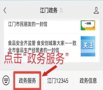 一、關注“江門政務”微信公眾號
