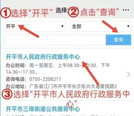 四、選擇辦事大廳,選擇“開平市人民政府行政服務中心”