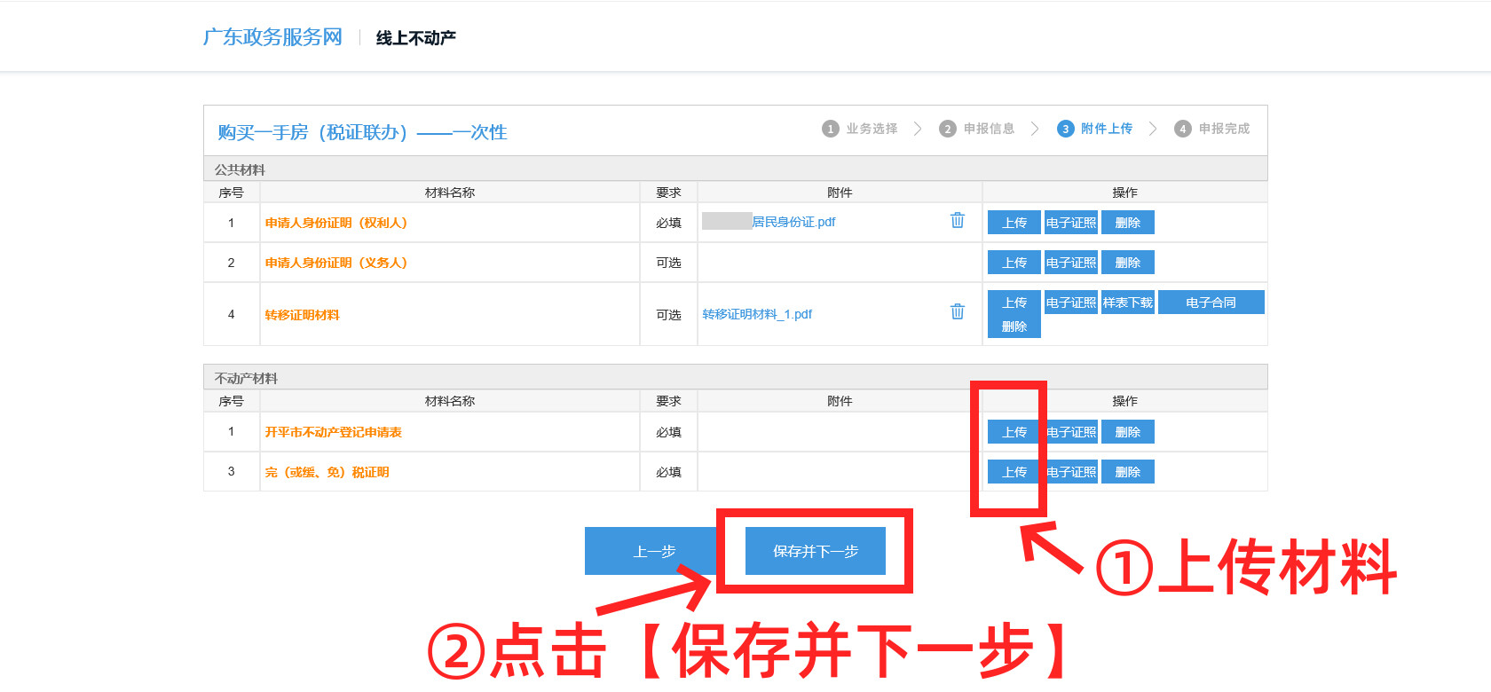 第九步:利用高拍儀掃描“不動產(chǎn)材料”并上傳,上傳完畢后點擊【保存并下一步】。(更換圖片)