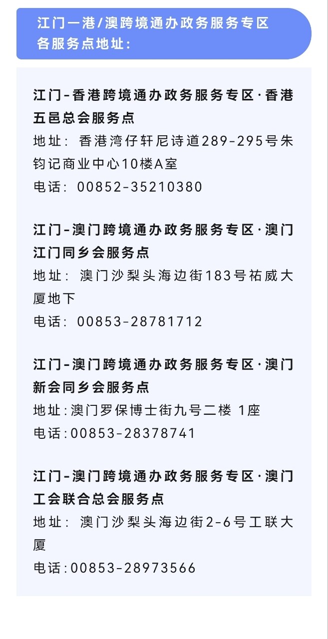 跨境通辦,開平市政府在香港、澳門均設(shè)有綜合性政務(wù)服務(wù)專區(qū),港澳地區(qū)的企業(yè)和群眾可“零出關(guān)”辦理開平市的不動產(chǎn)、企業(yè)開辦、人才就業(yè)、稅務(wù)、社保、公積金、機(jī)動車等高頻事項,以及廣東省內(nèi)其他城市的高頻事項。市行政服務(wù)中心在服務(wù)大廳一樓設(shè)立了“江門·開平—港澳跨境通辦政務(wù)服務(wù)專區(qū)”,并配備專門的業(yè)務(wù)員,為有需要的群眾提供相關(guān)業(yè)務(wù)辦理服務(wù)??缇惩ㄞk,大大減少了港澳同胞跨境辦事的跑腿次數(shù),有效提升了辦事便捷度、體驗度和滿意度。