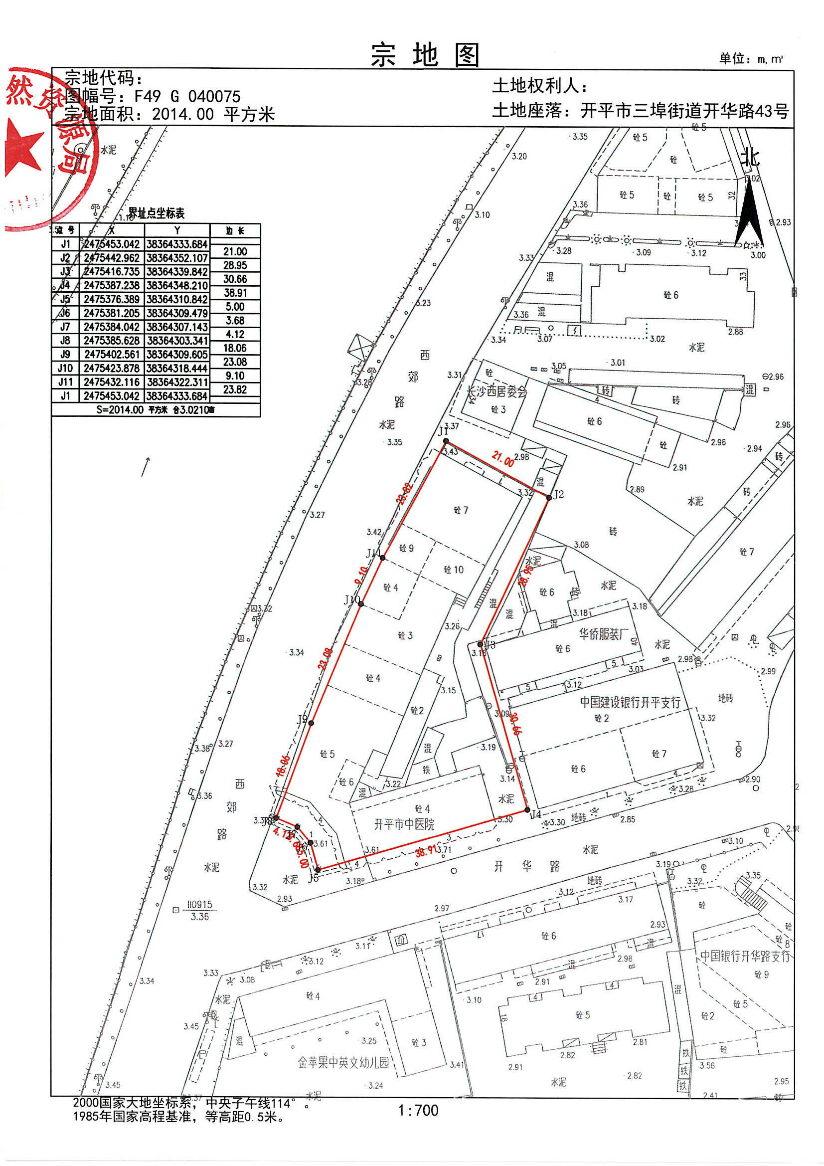 坐落在三埠長(zhǎng)沙開(kāi)華路(現(xiàn)編門牌:開(kāi)平市三埠街道開(kāi)華路43號(hào))[開(kāi)府國(guó)用(1988)第000913號(hào)]的土地使用權(quán),土地面積2014平方米。用地單位開(kāi)平市中醫(yī)院現(xiàn)申請(qǐng)辦理不動(dòng)產(chǎn)變更登記。若對(duì)該用地界線范圍內(nèi)的用地或地上建筑物權(quán)屬有異議者,自公告之日起15個(gè)工作日內(nèi)向開(kāi)平市自然資源局三埠自然資源所書面提出意見(jiàn)。如無(wú)異議,公告期滿即給該單位辦理不動(dòng)產(chǎn)登記有關(guān)手續(xù)。用地界線詳見(jiàn)附圖。