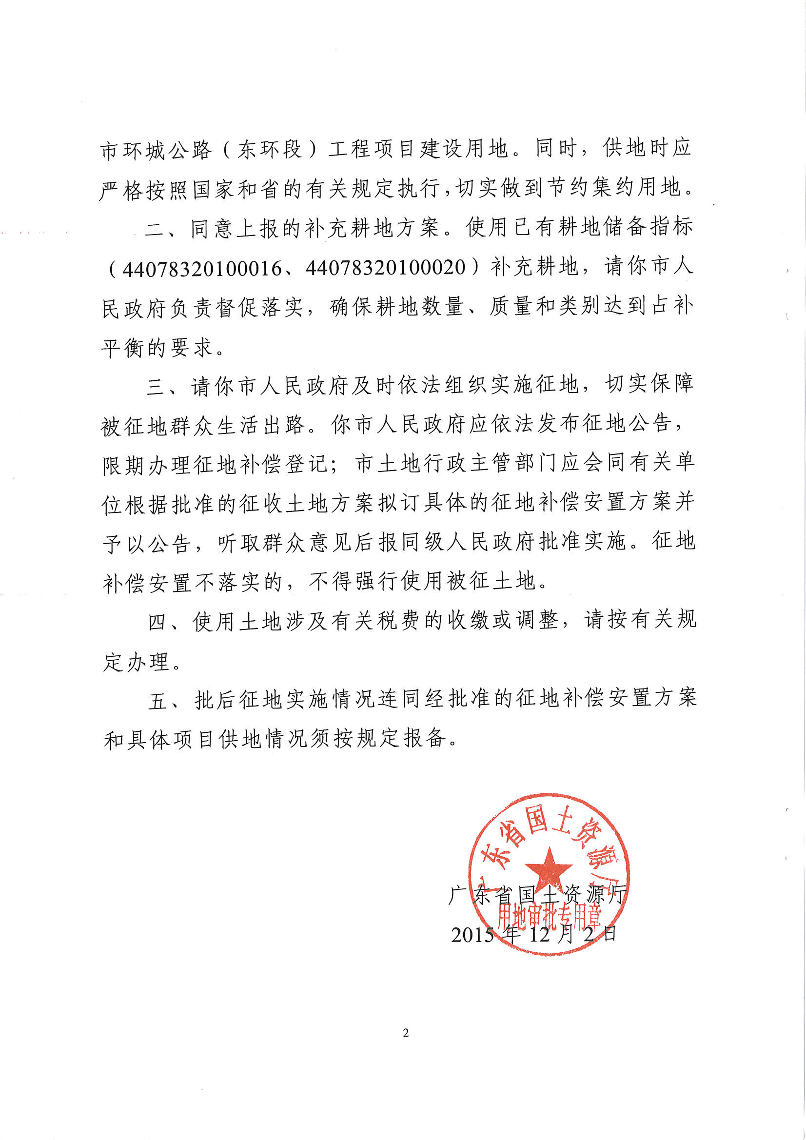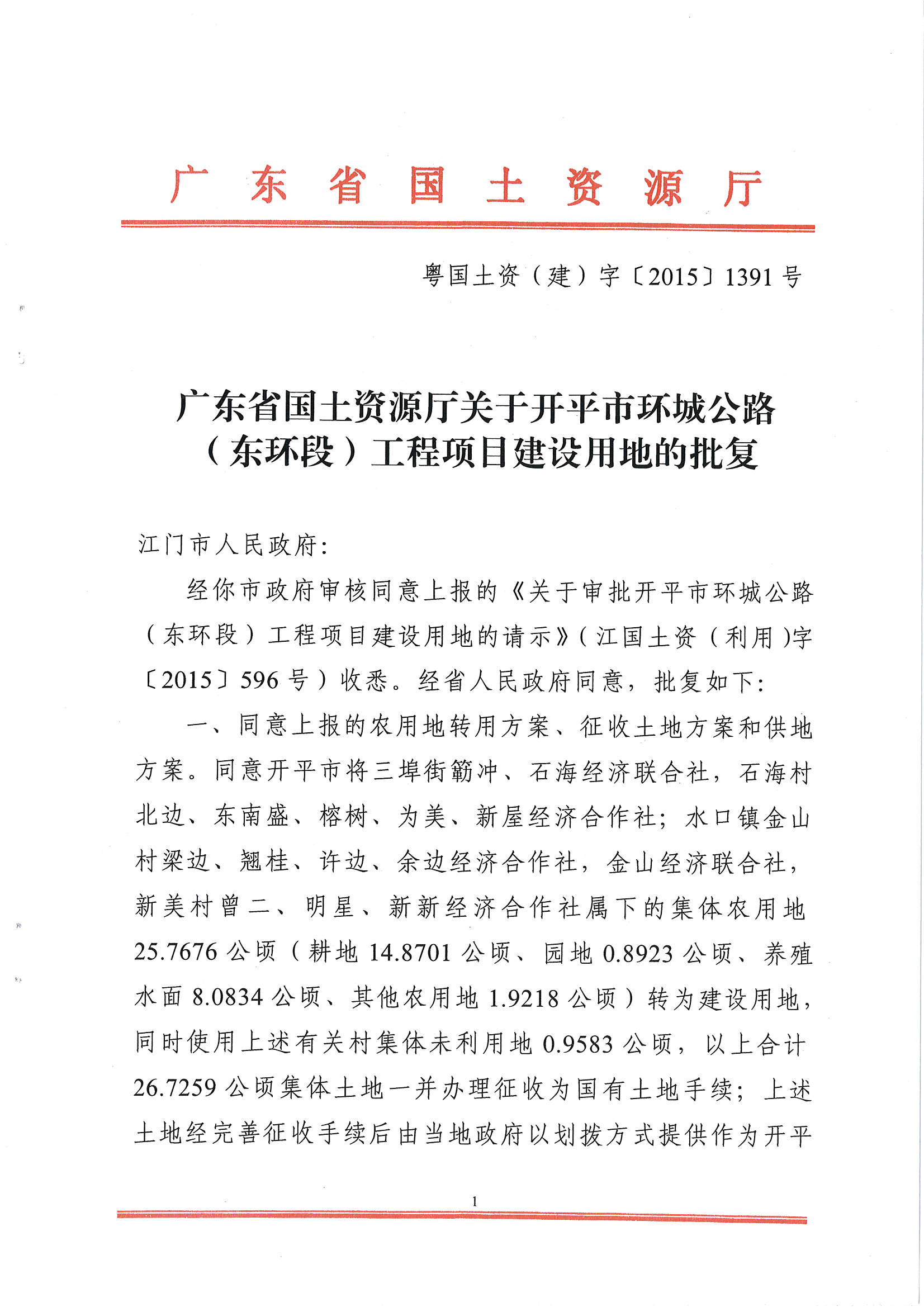 開平市環(huán)城公路(東環(huán)段)工程項(xiàng)目建設(shè)用地的批復(fù)