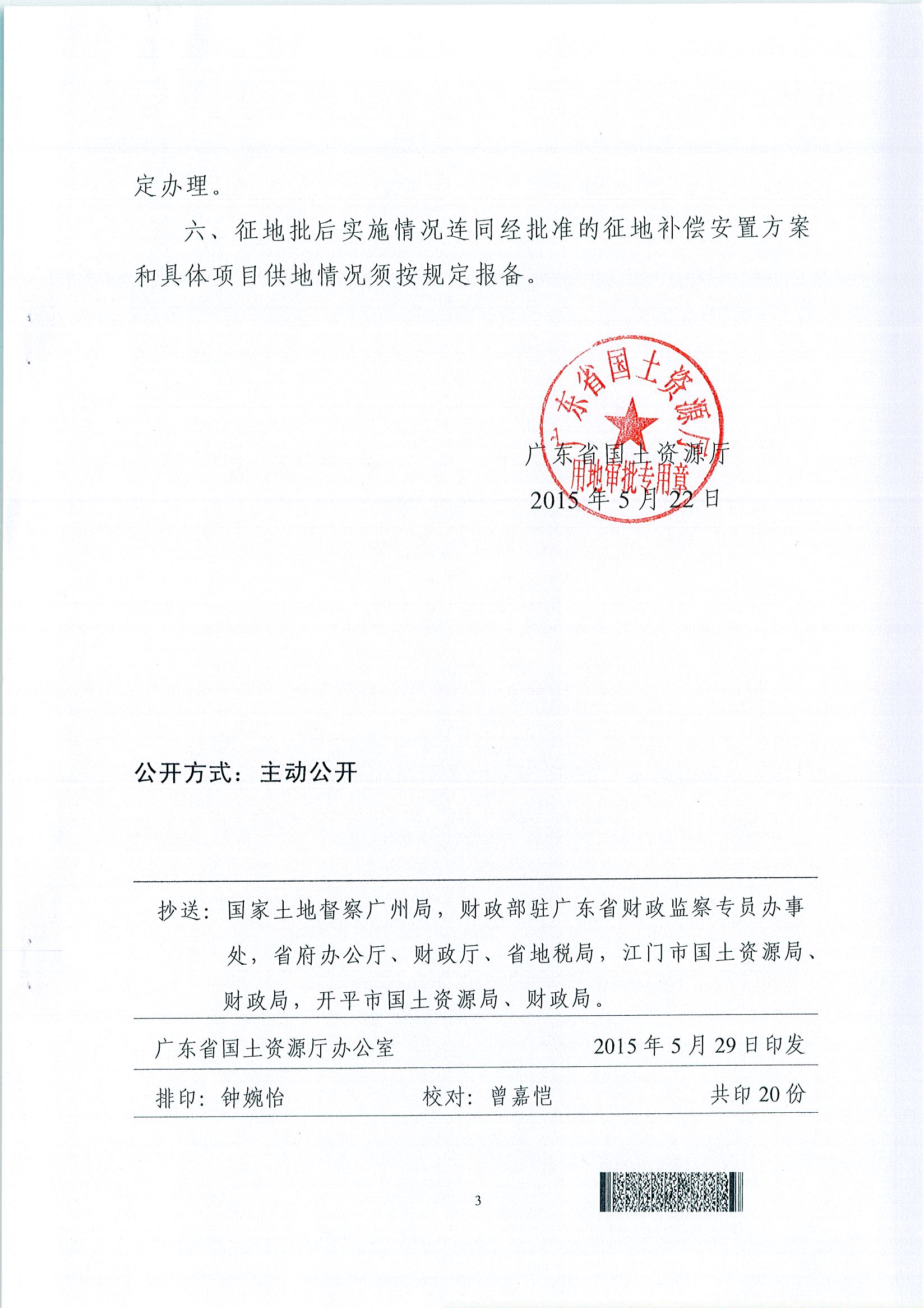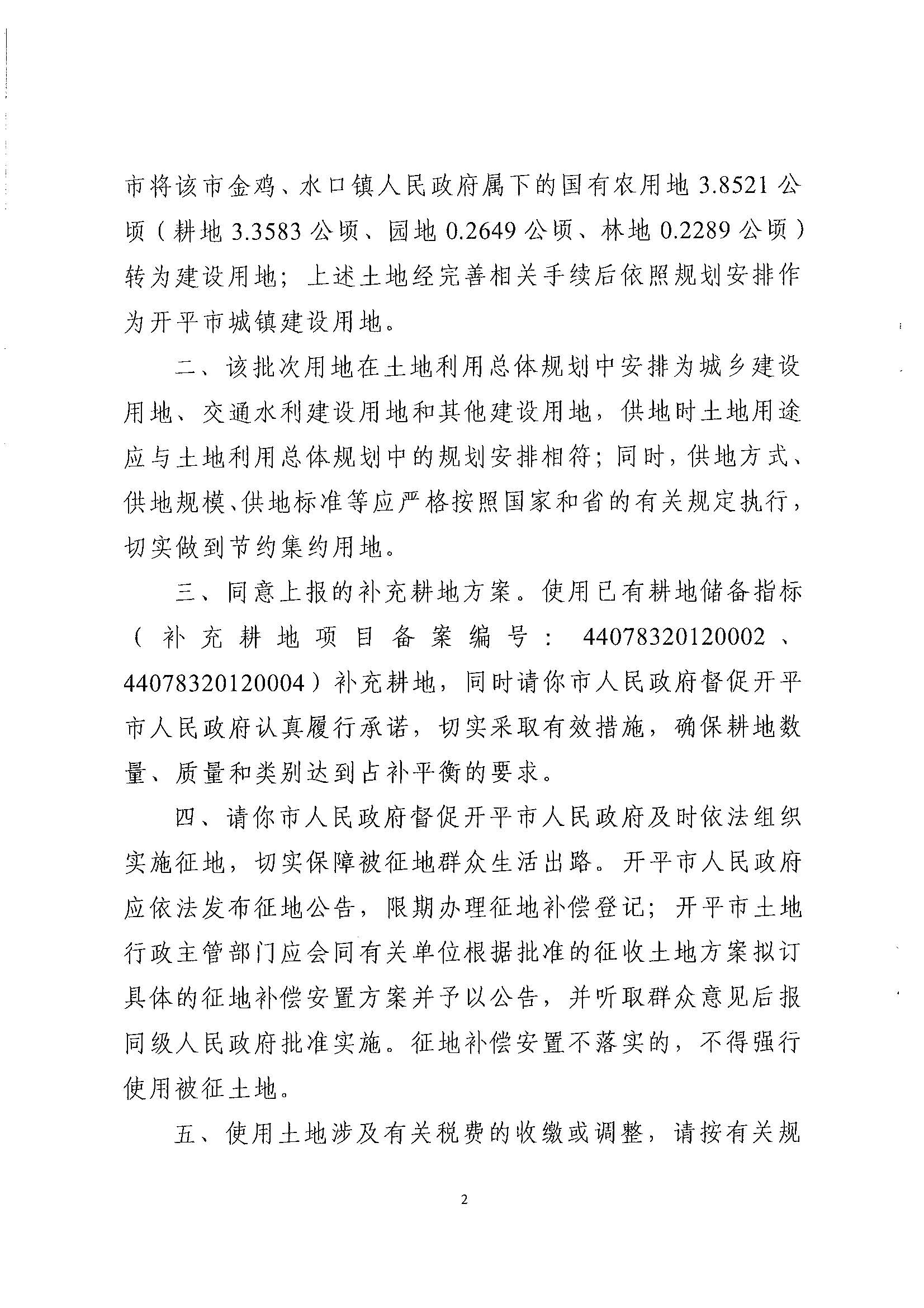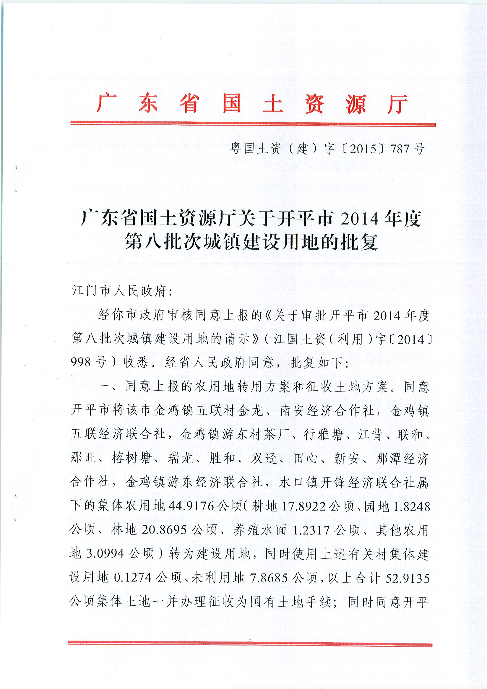 開平市2014年度第八批次城鎮(zhèn)建設用地的批復