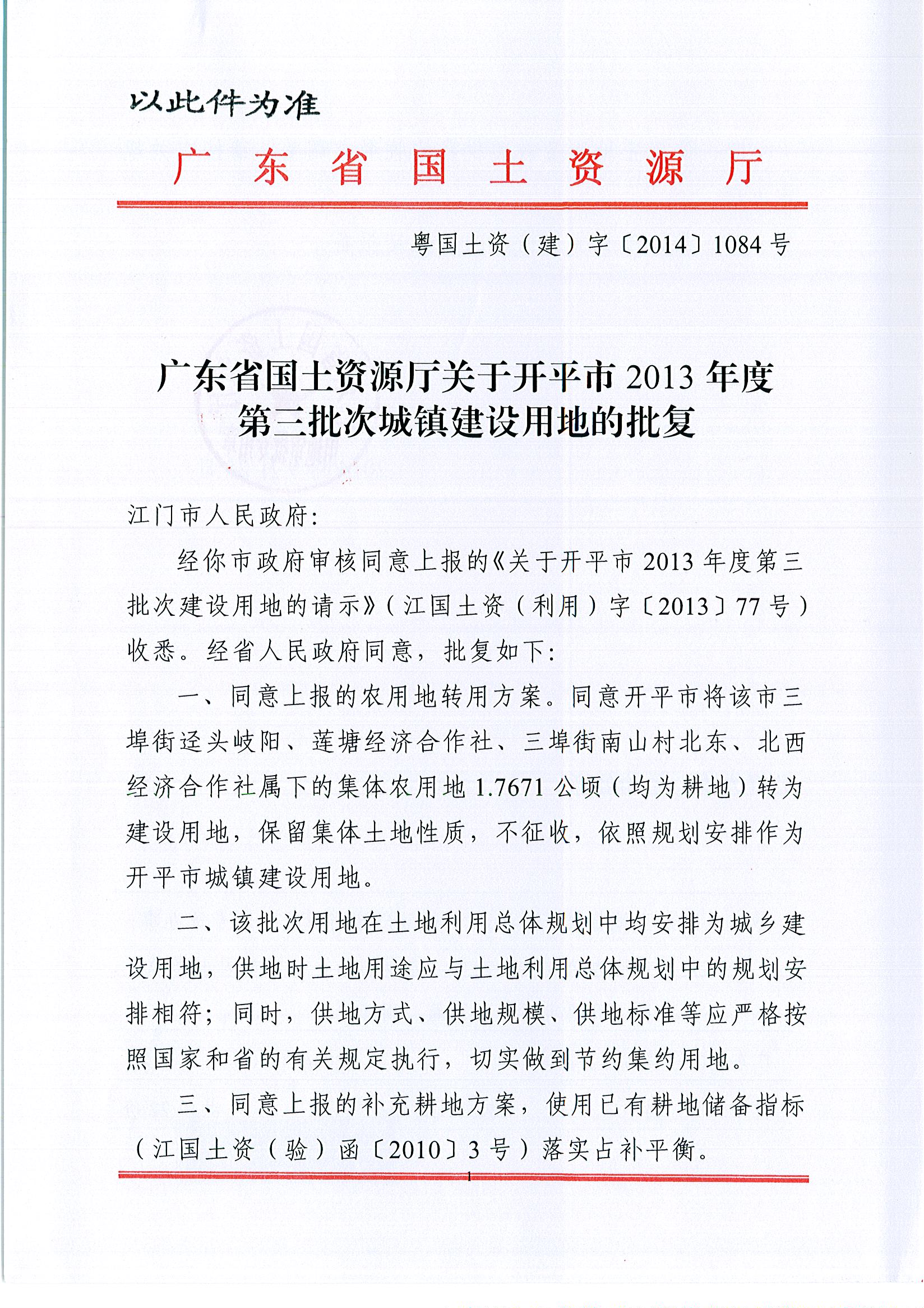 開平市2013年度第三批次城鎮(zhèn)建設(shè)用地的批復(fù)