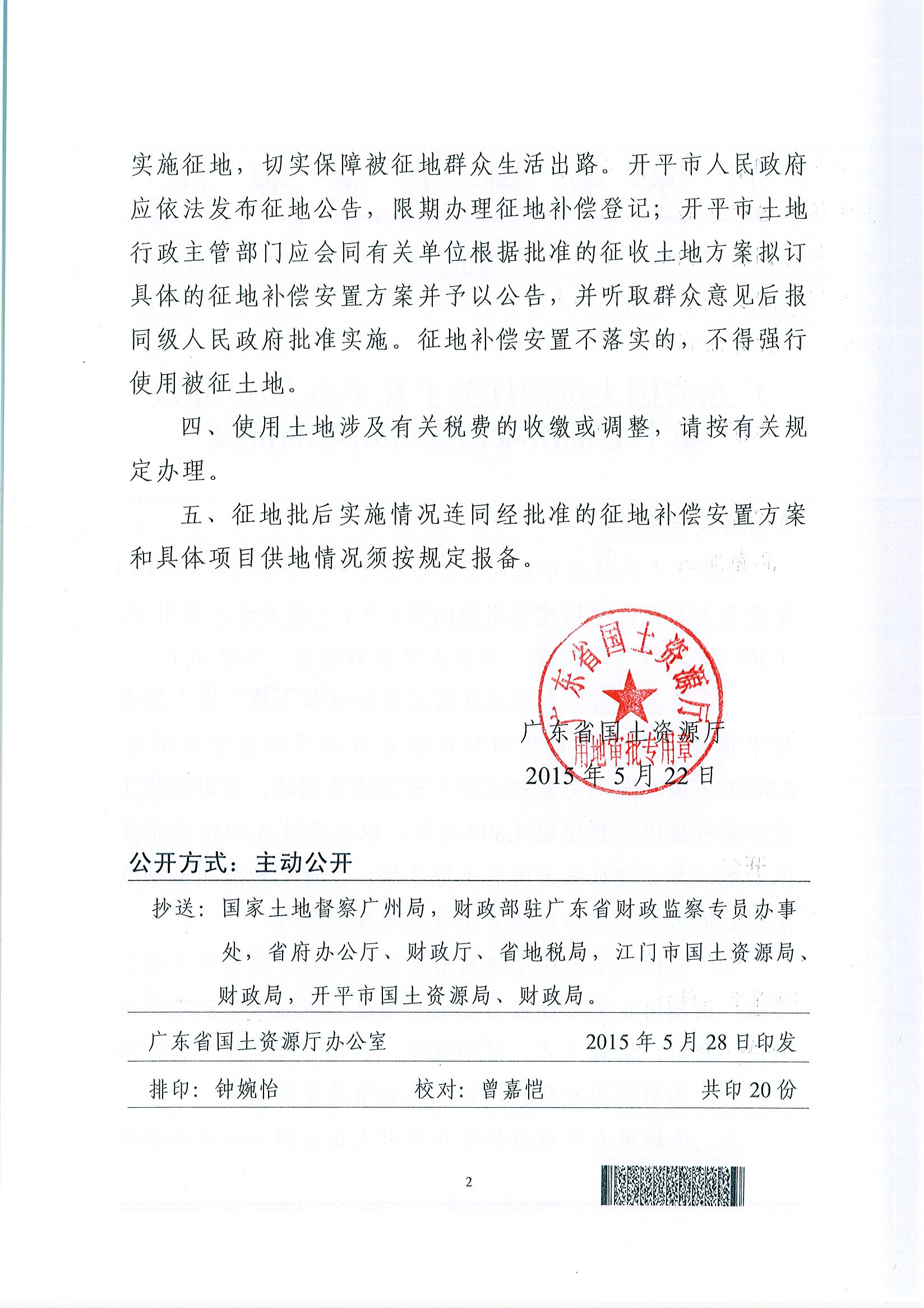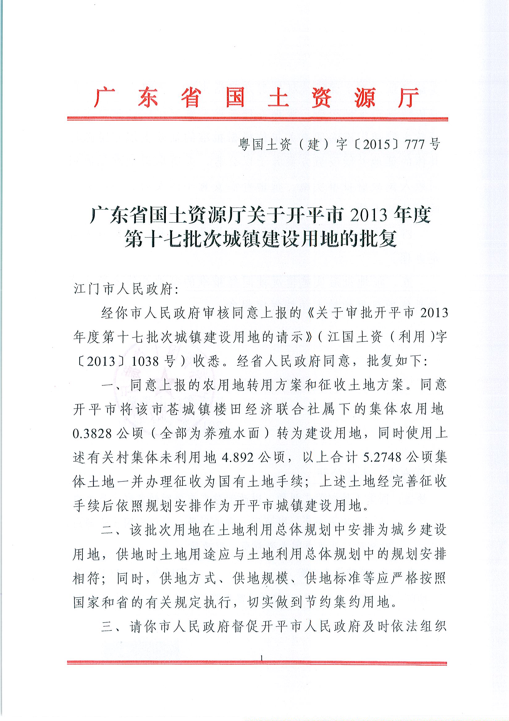 開平市2013年度第十七批次城鎮(zhèn)建設(shè)用地的批復(fù)