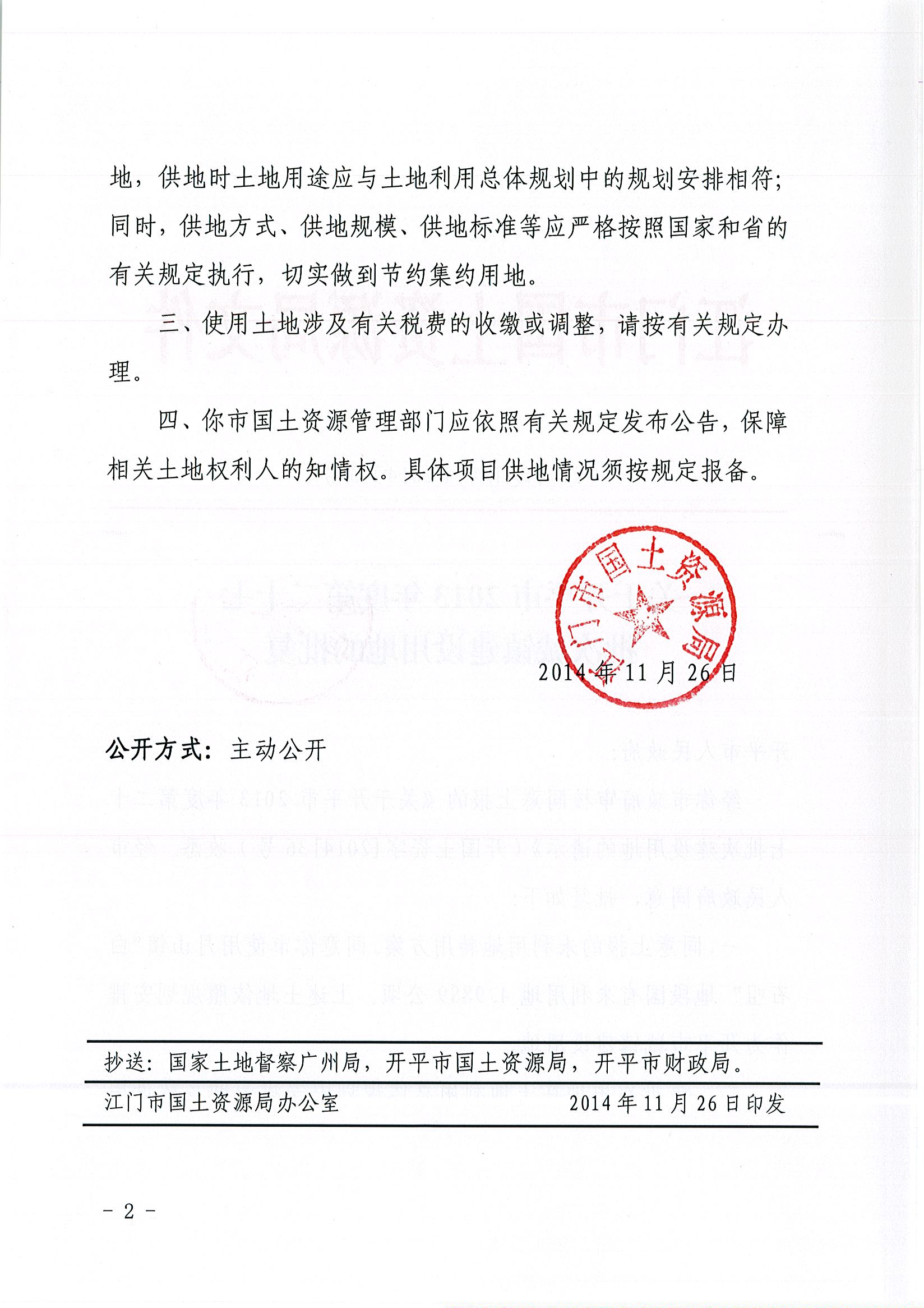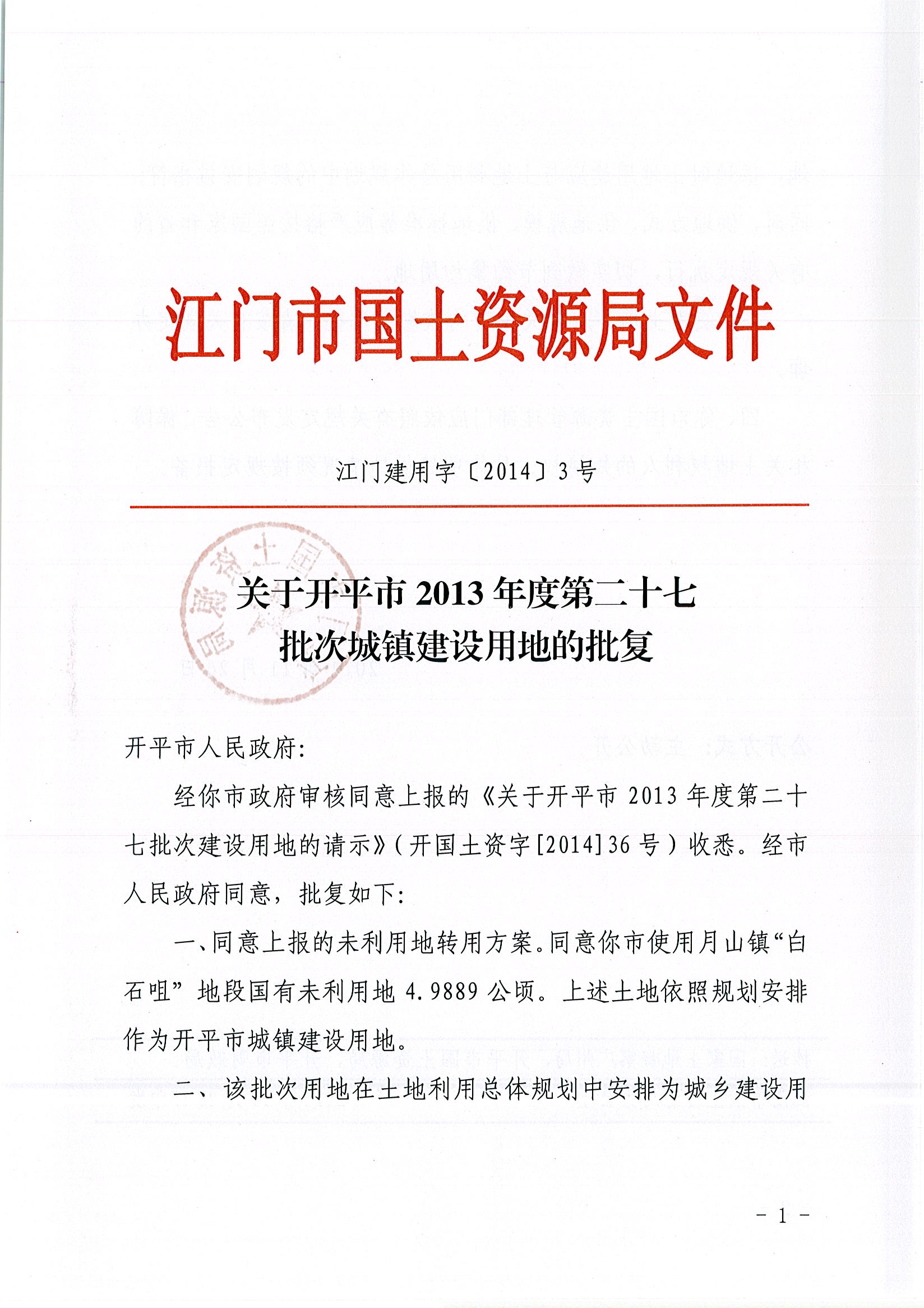 開平市2013年度第二十七批次城鎮(zhèn)建設(shè)用地的批復(fù)