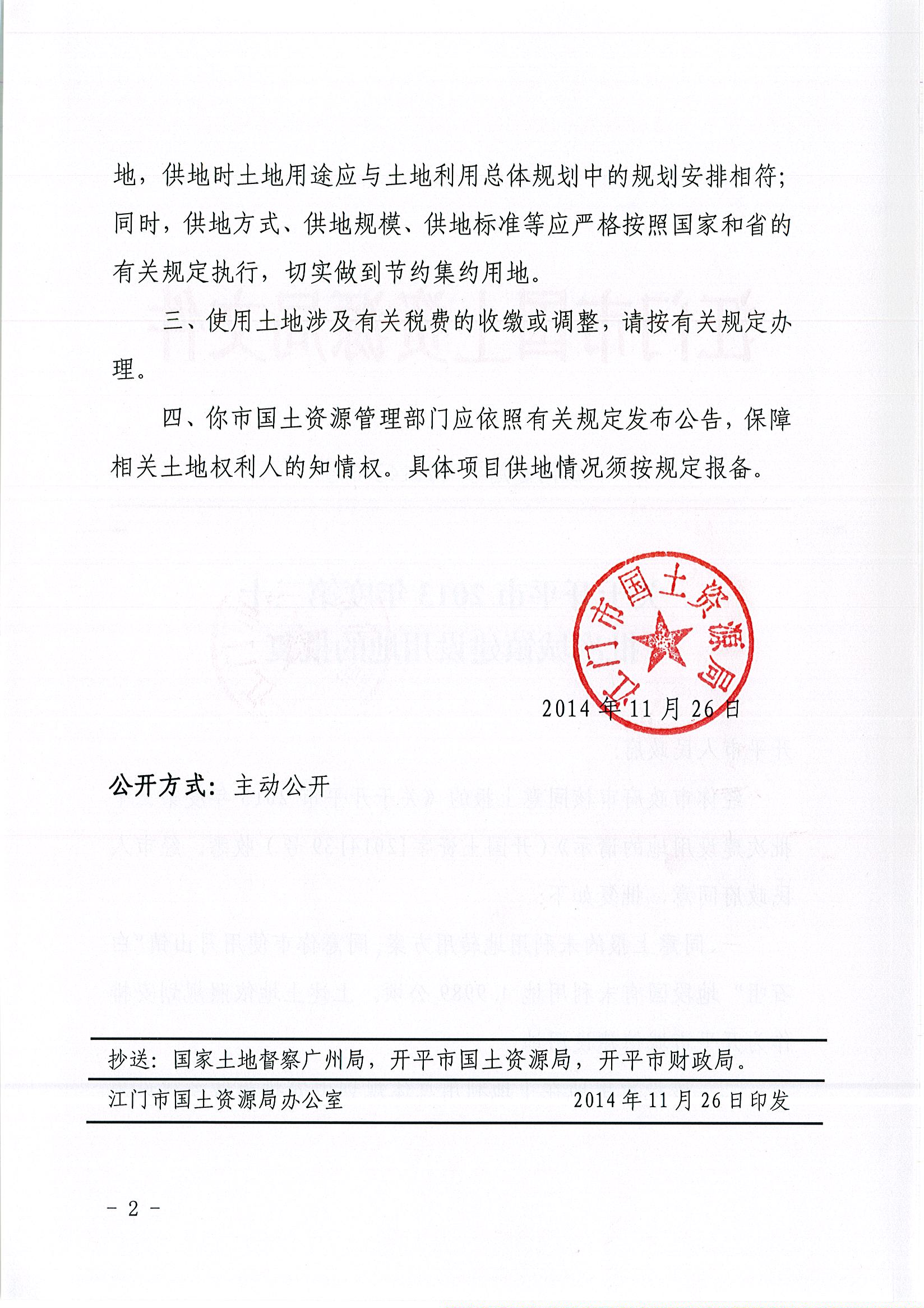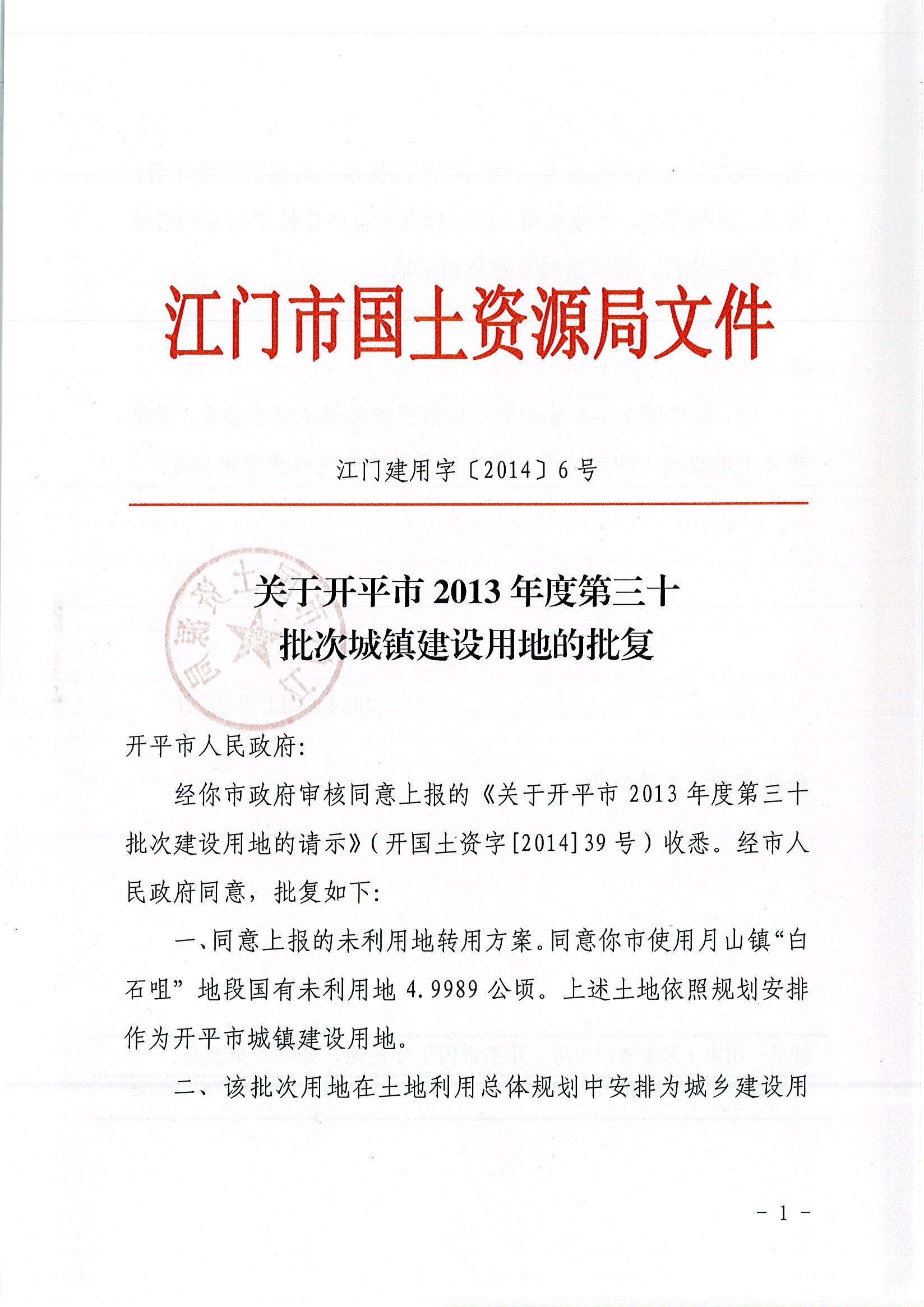 開平市2013年度第三十批次城鎮(zhèn)建設(shè)用地的批復(fù)