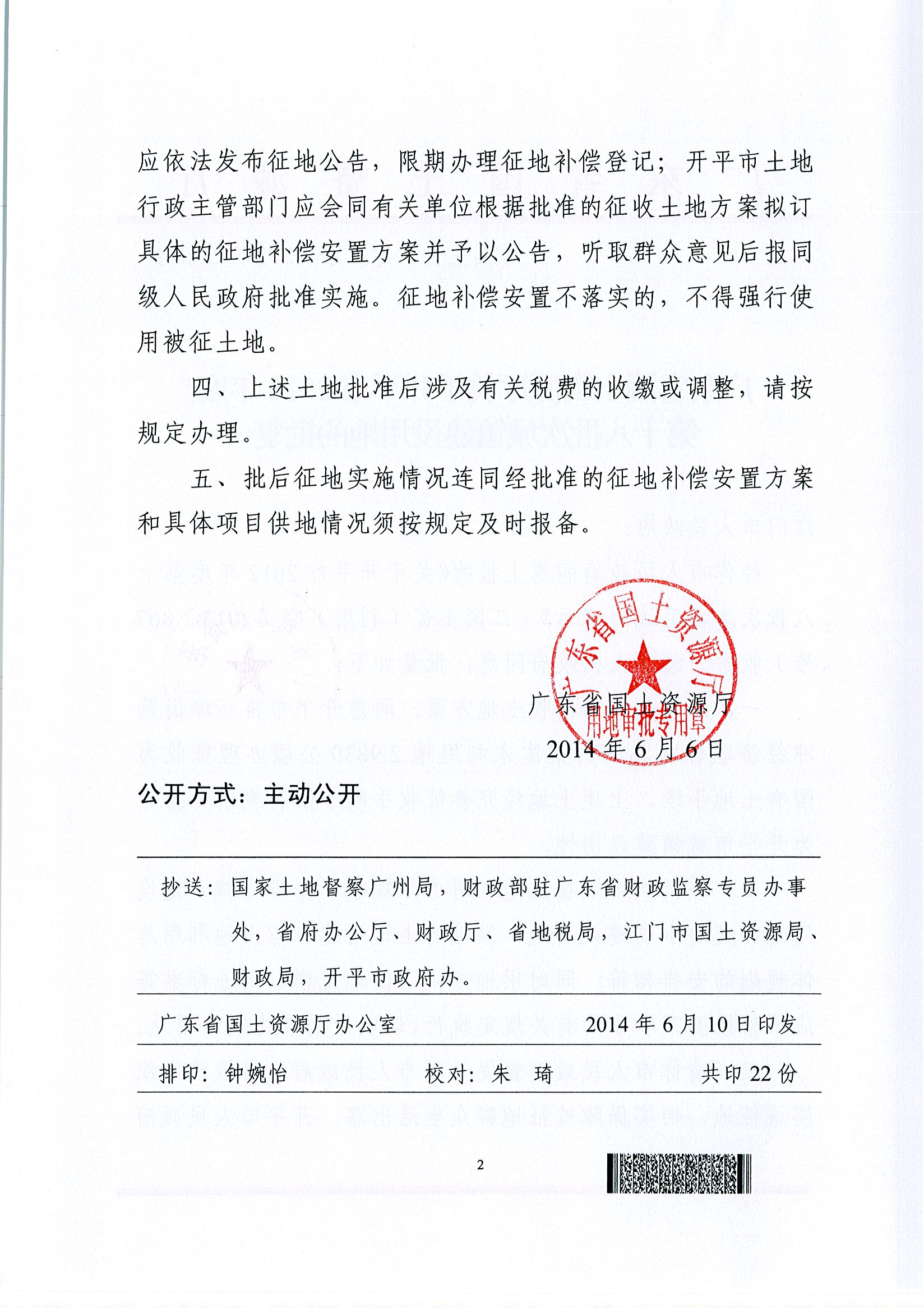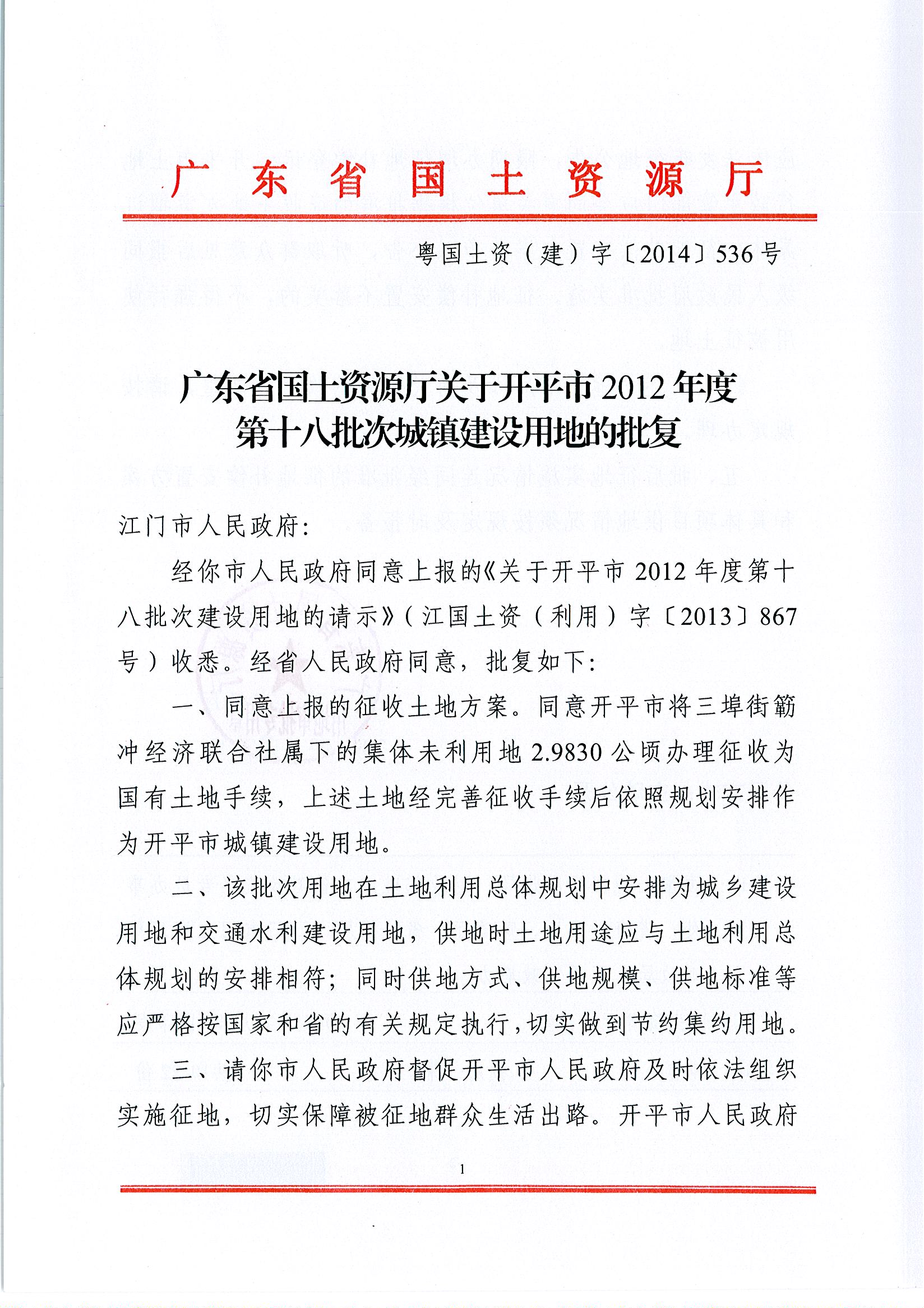 開平市2012年度第十八批次城鎮(zhèn)建設(shè)用地的批復(fù)